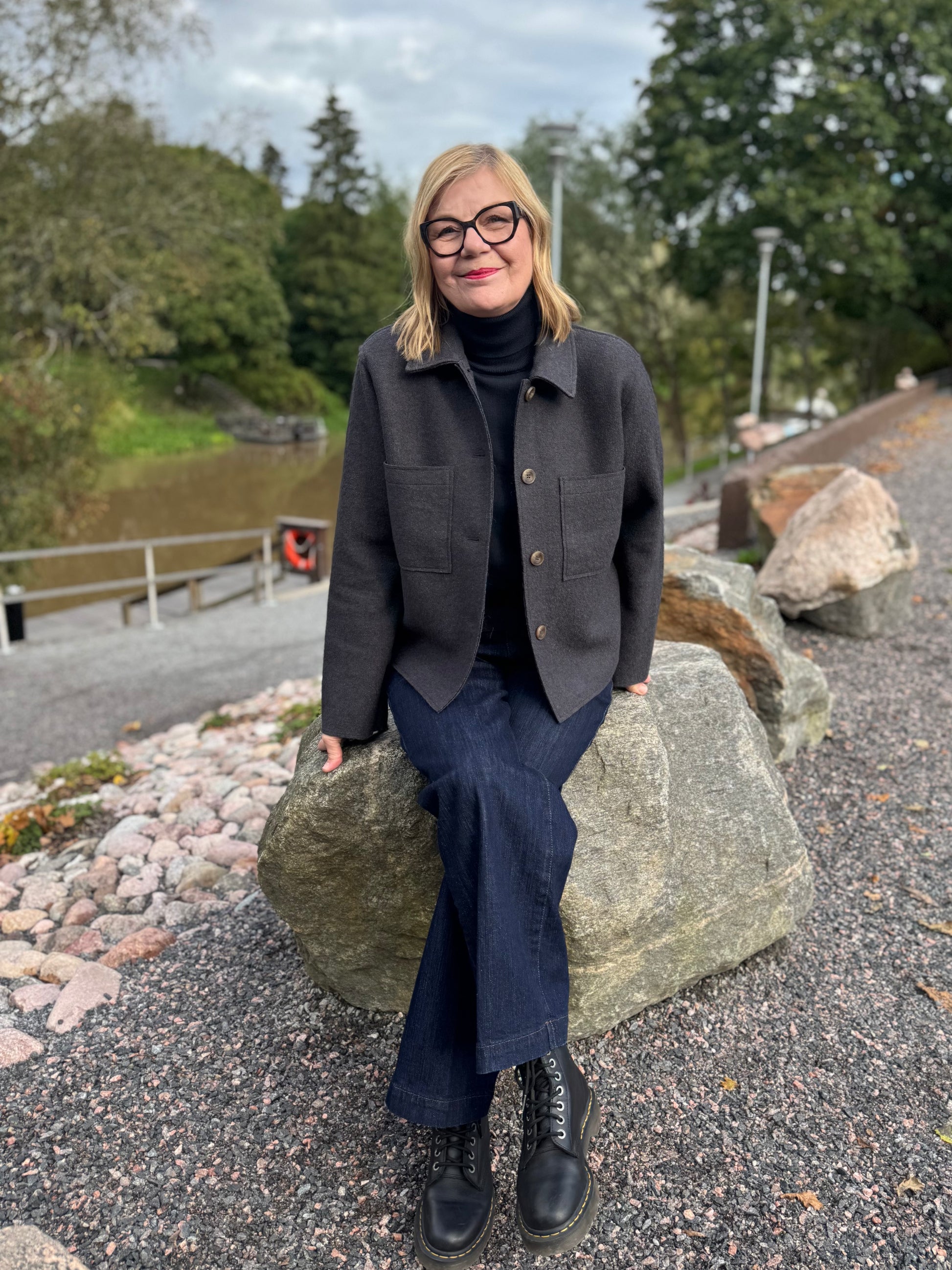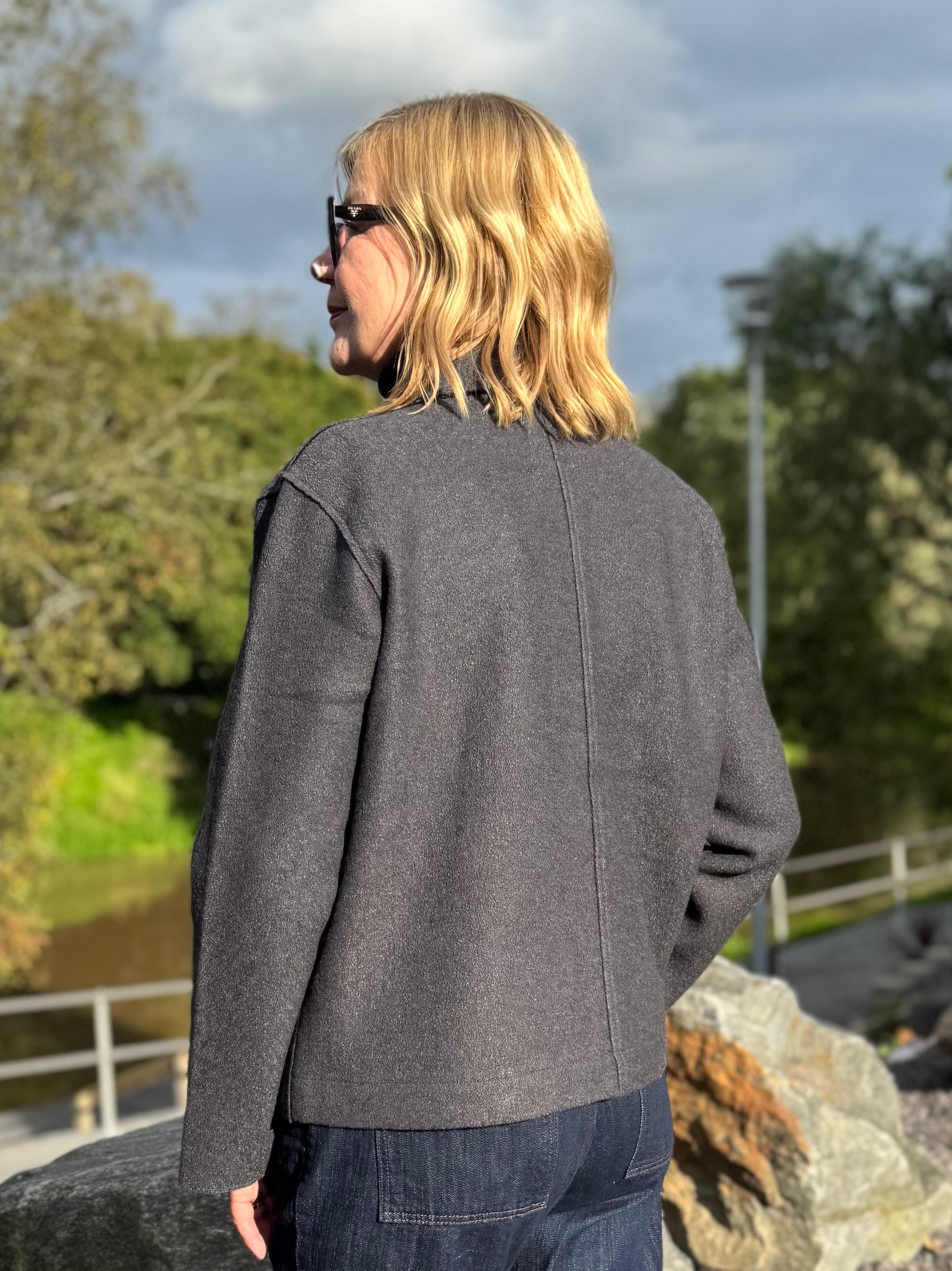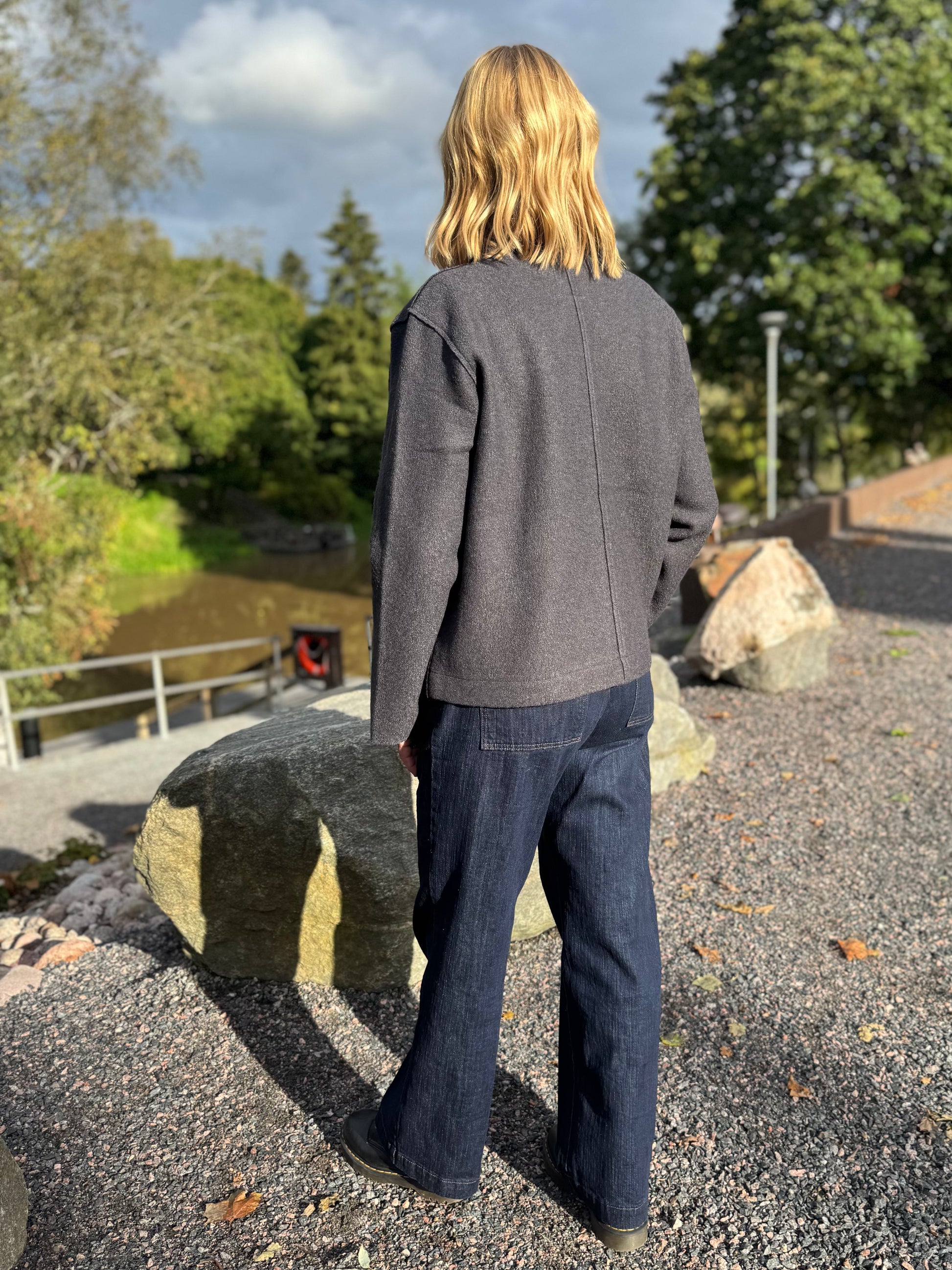 Syksyinen Blue Sportswear Fie takki, jossa edessä taskut. Blue Sportswear takissa on suora malli ja se on valmistettu paksusta, huopamaisesta villasekoitteesta.