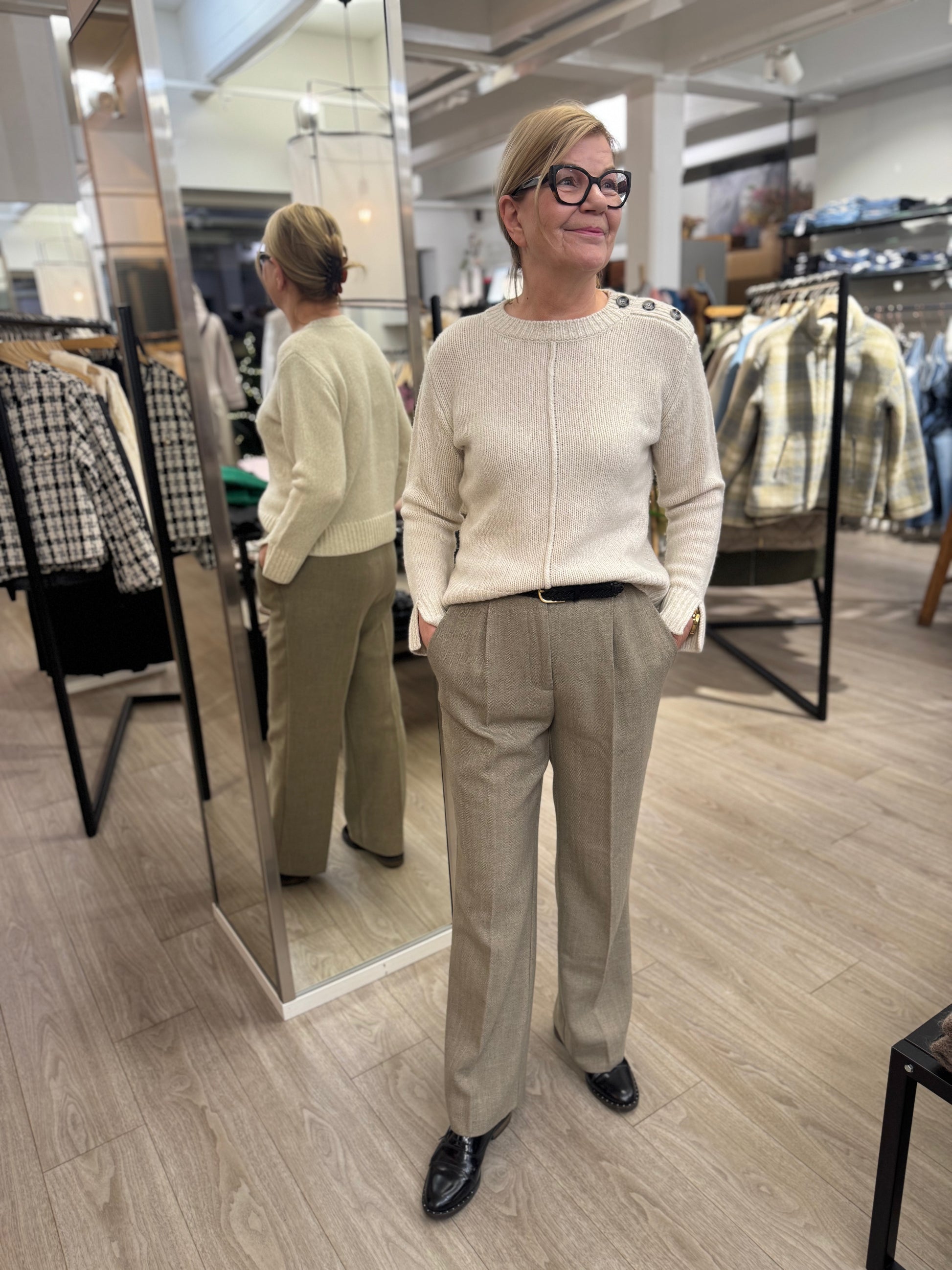 Ajaton, vaalea Blue Sportswearin Frida neule, jossa hihansuissa halkiot. Neuleessa on pääntiellä nappi yksityiskohdat. Blue Sportswear Frida neuleessa on erittäin pehmeä materiaali.