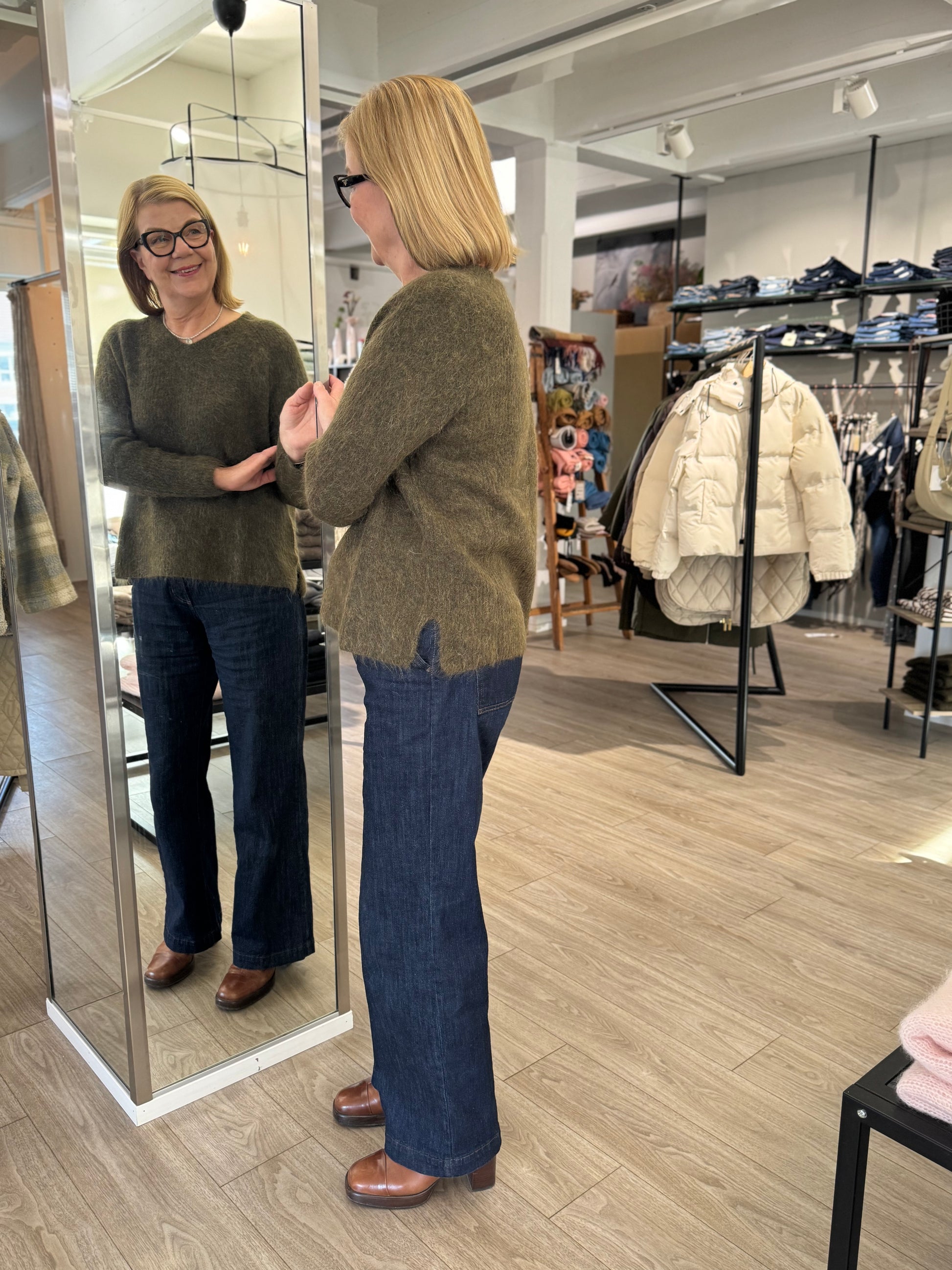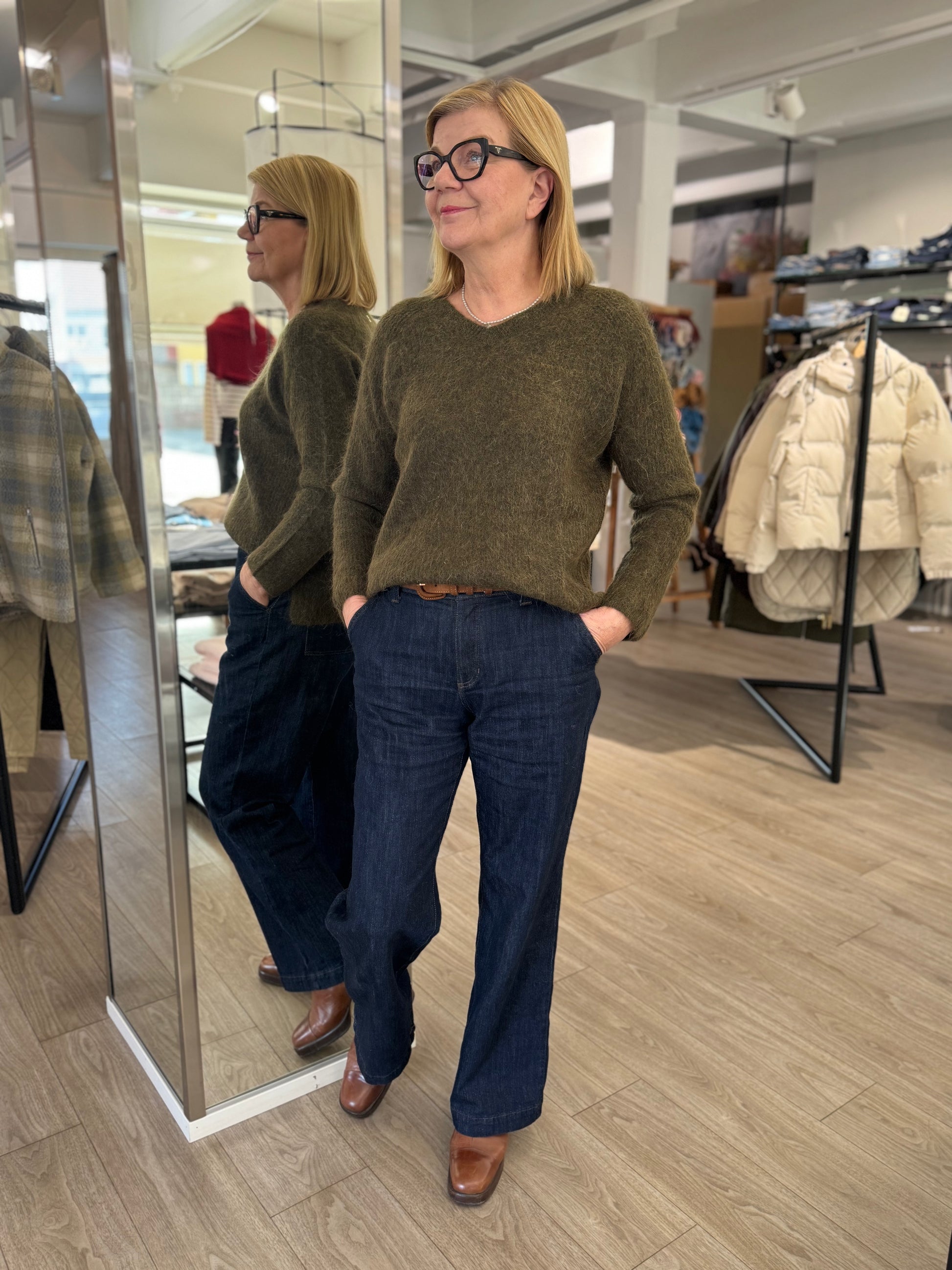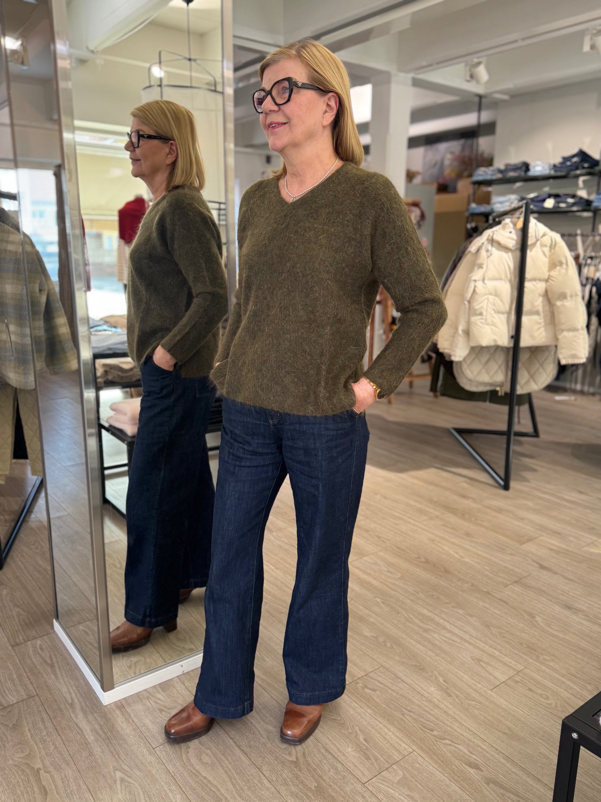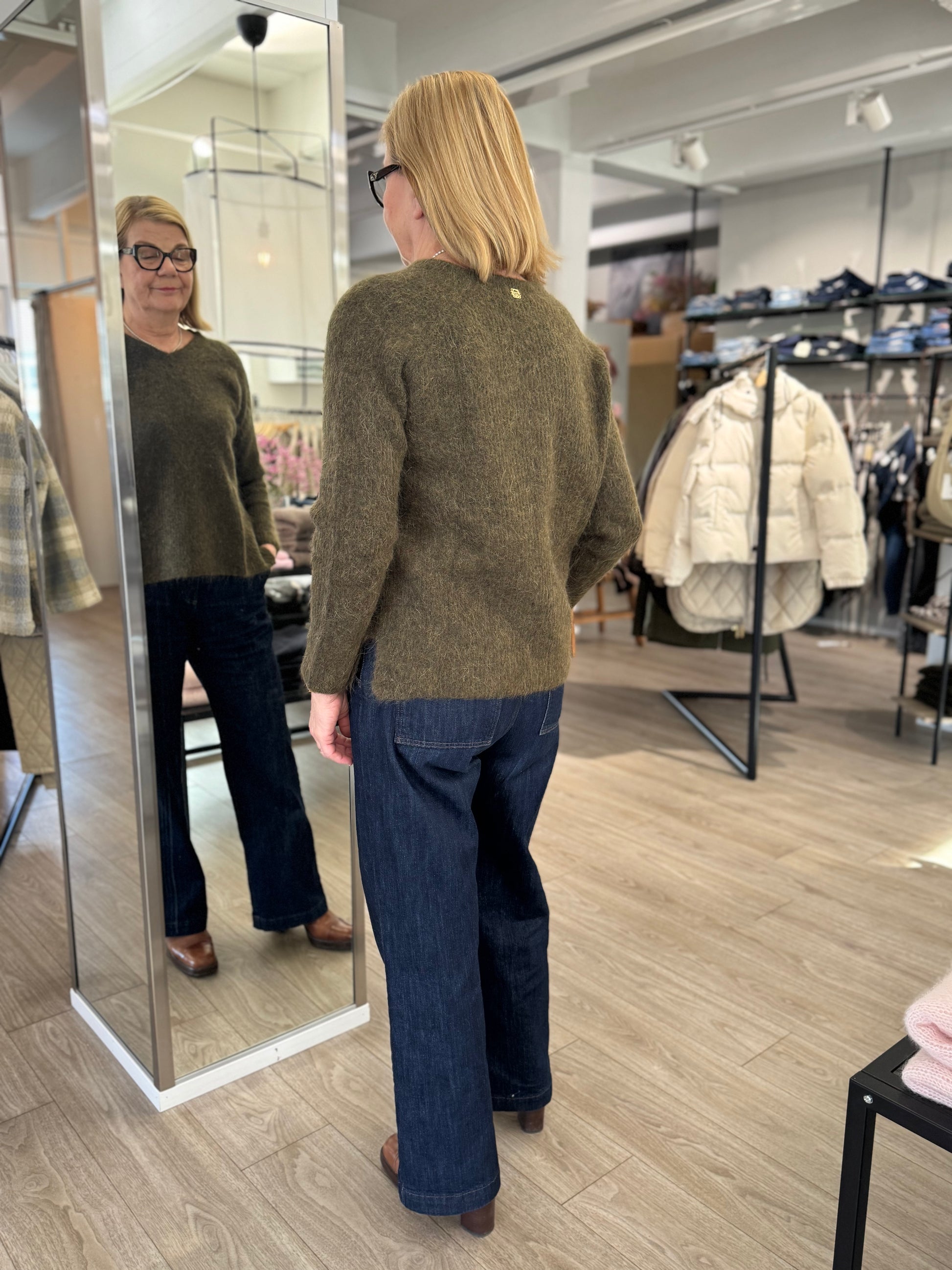 Pehmeä ja pörröinen Claire Woman Petrusjka neule, jossa V-pääntie ja raglanhihat.. Neuleen helmassa sivuilla pienet halkiot. Claire Woman Petrusjka neuleessa erittäin miellyttävä materiaali.
