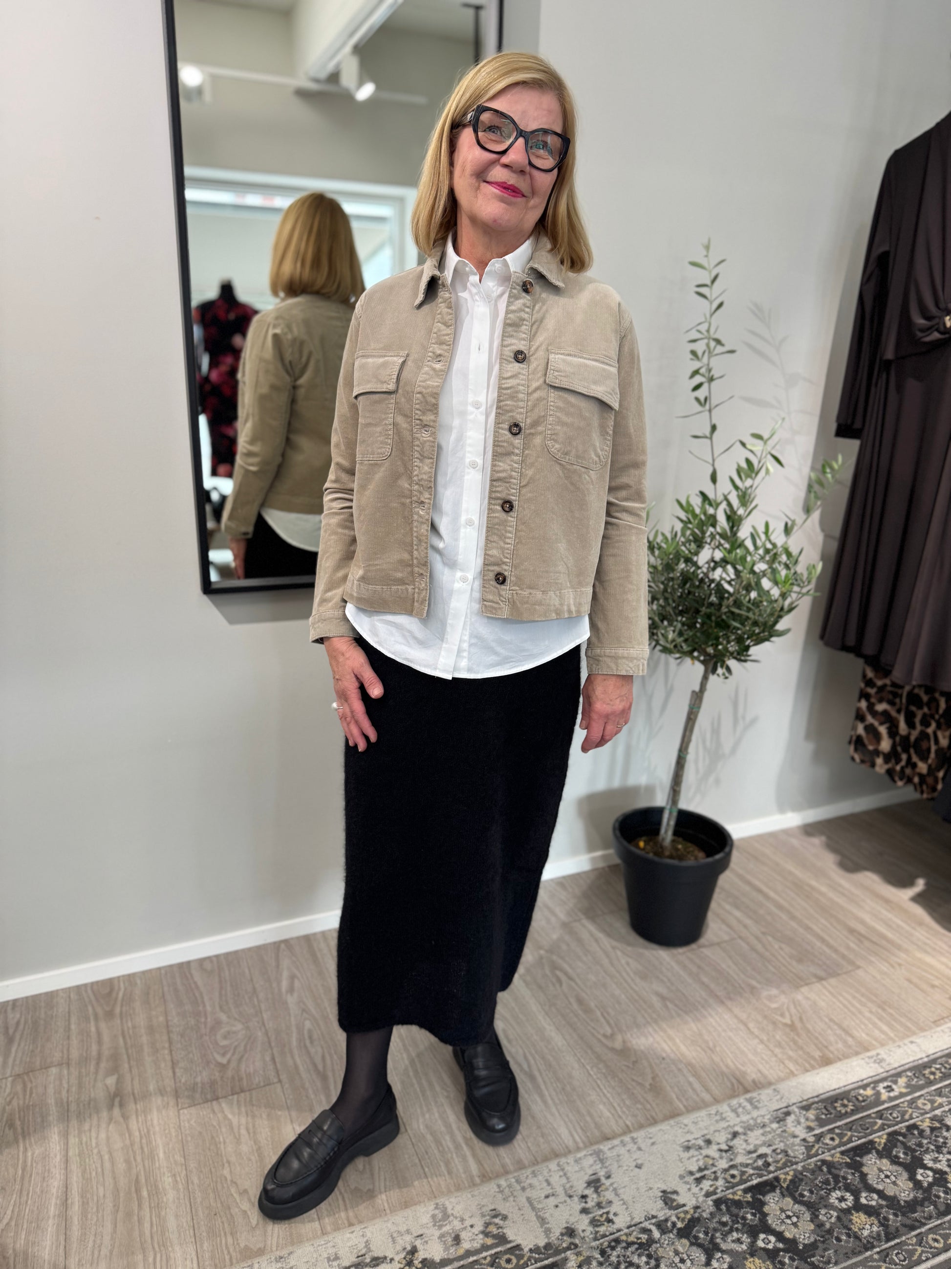 Kapeavakoisesta sametista valmistettu tyylikäs Claire Woman Elana takki, ajattoman vaaleassa sävyssä. Claire Woman Elana takissa on edessä nappikiinnitys, klassiset kaulukset ja läpälliset rintataskut. Valmistettu miellyttävän pehmeästä ja joustavasta materiaalista. Yhdistä Claire Woman Nadia hameen kanssa, saadaksesi täydellisen kokonaisuuden.