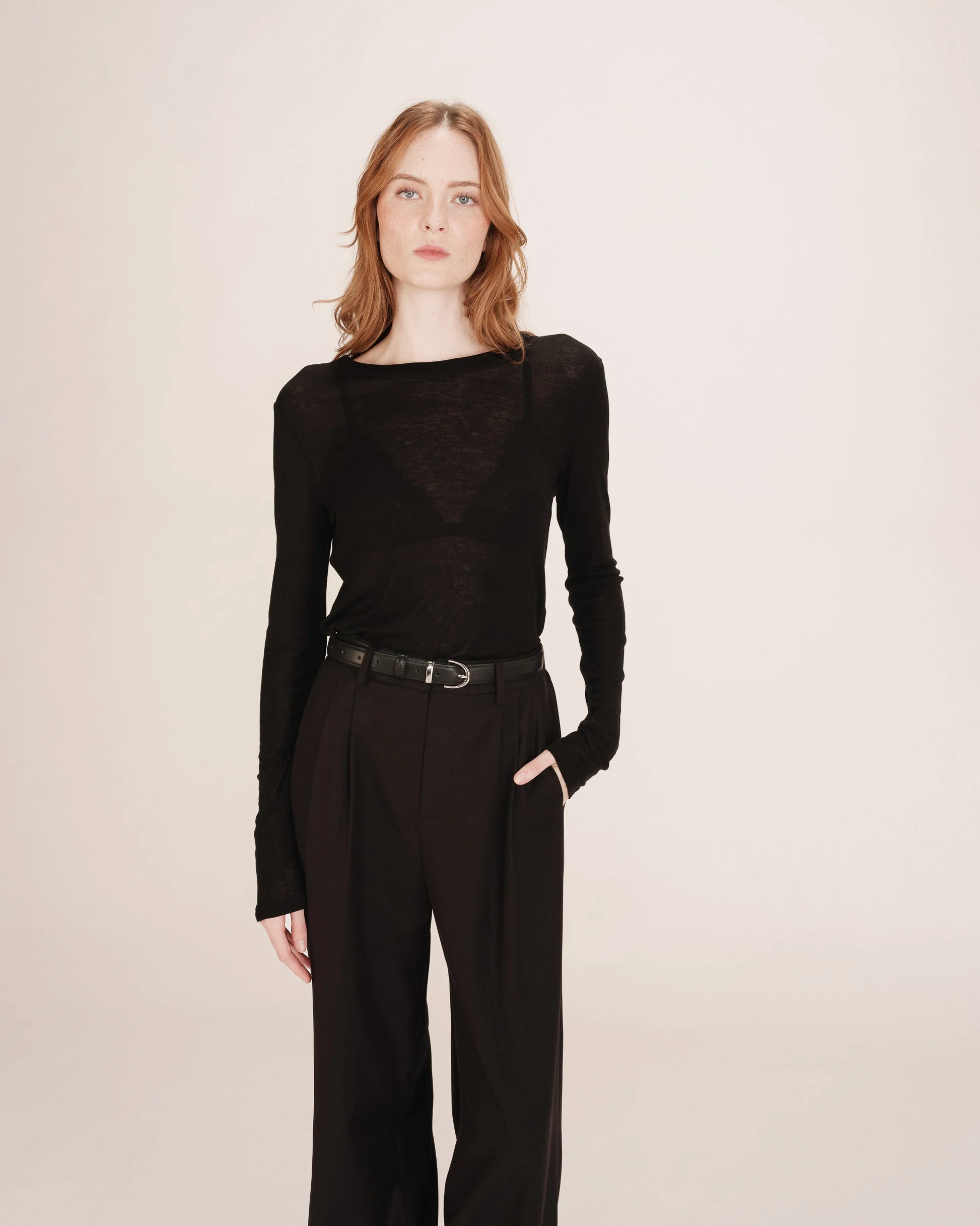 Leveät ja kauniisti laskeutuvat Grace & Mila Tatum housut tyylikkäillä prässeillä ja etulaskoksilla. Garce & Mila Tatum housuissa on korkea vyötärö, jossa takana kuminauha. Housuista löytyy vyölenkit, sivutaskut ja takana listataskut.