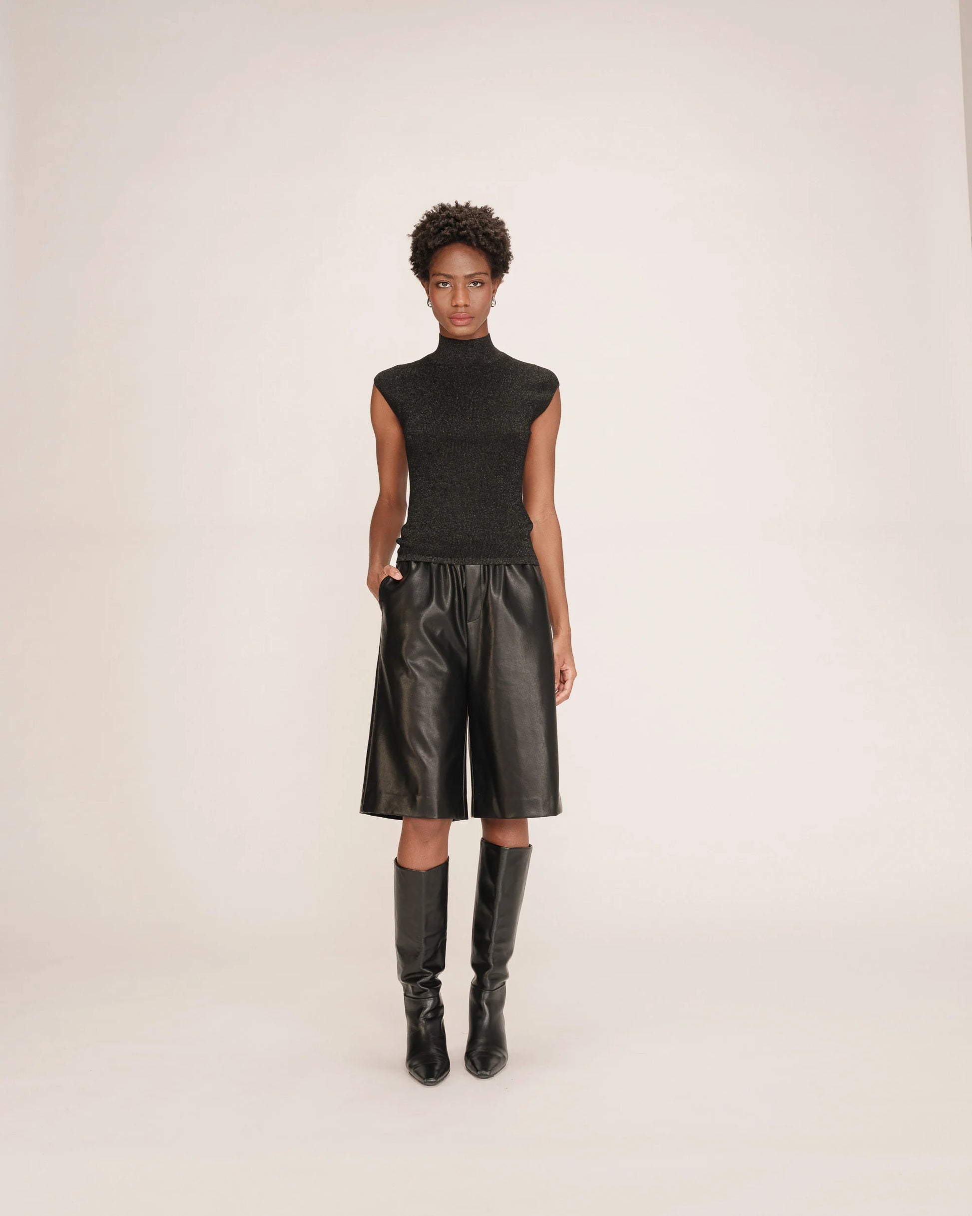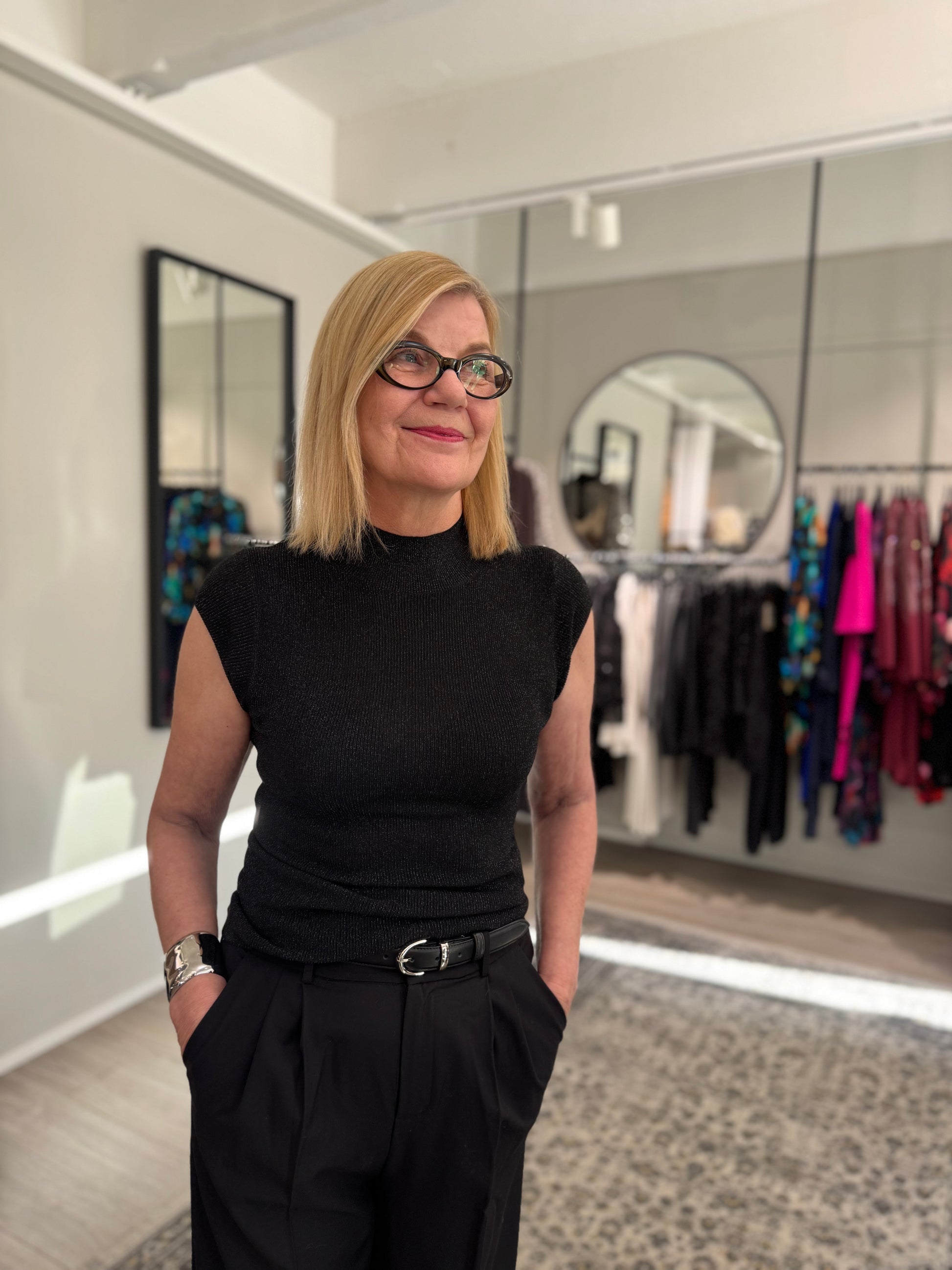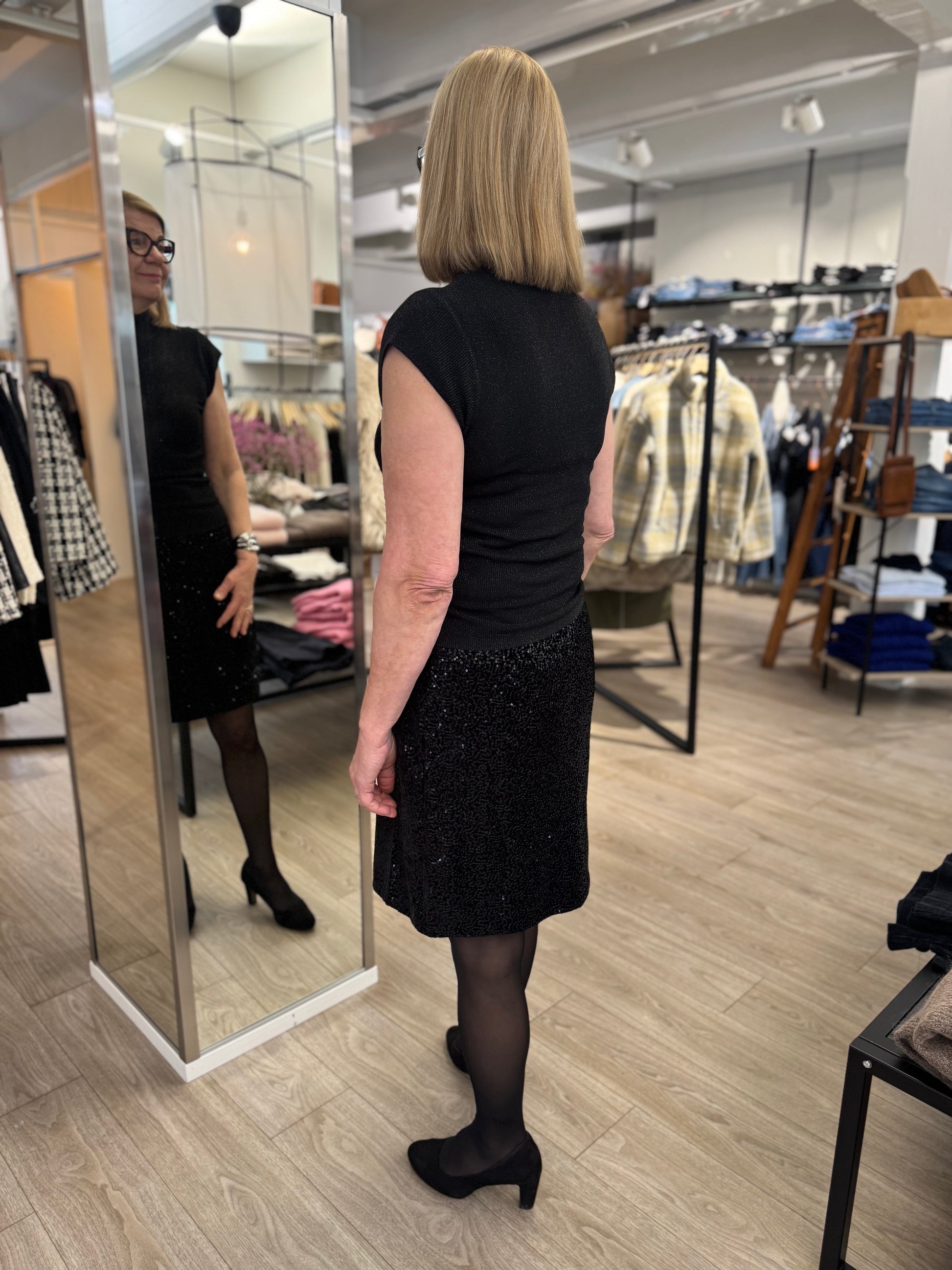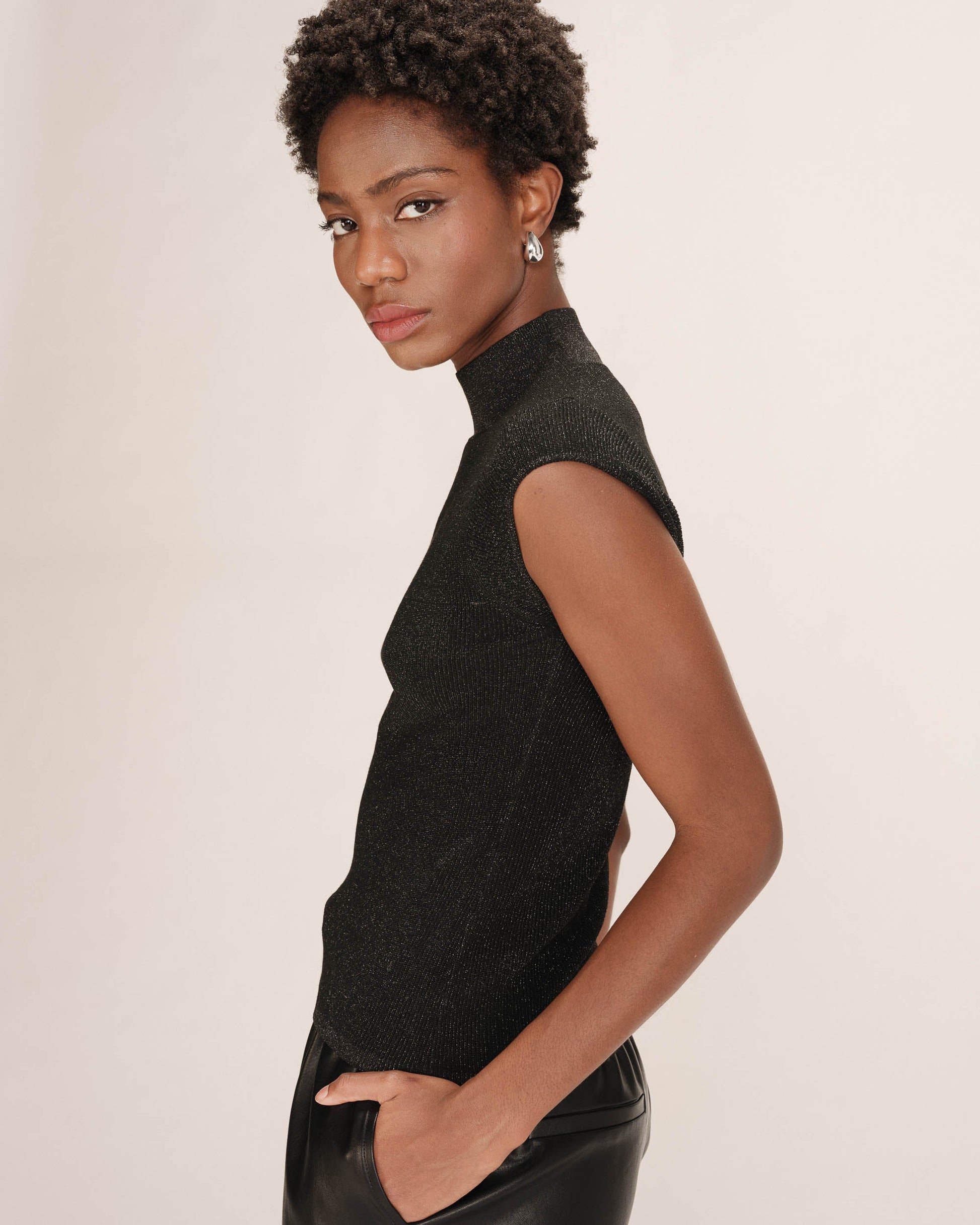 Ohut ja linjakas Grace & Mila Talisman neuletoppi pystykauluksella. Grace & Mila Talisman topissa on erittäin joustava ja notkea materiaali, sekä joukossa hopeista kimalletta.