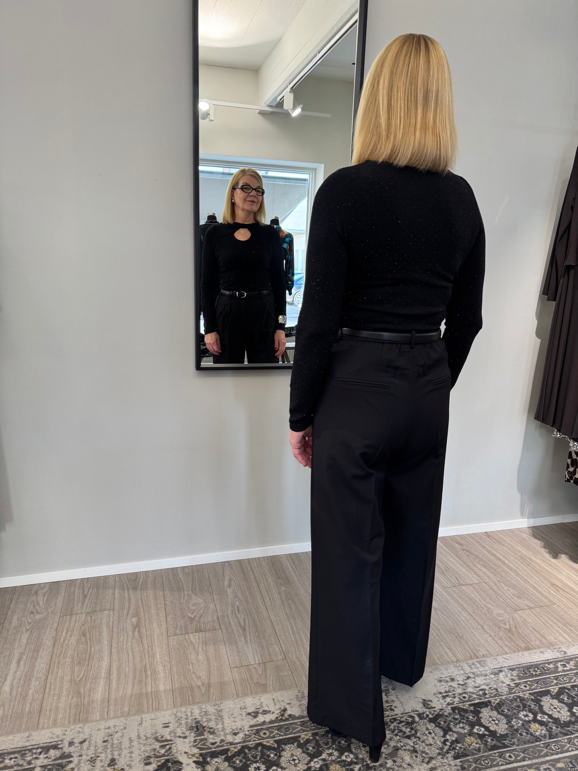 Upeasti kimaltava, joustava ja vartalonmyötäinen Grace & Mila Timothee lurex pusero. Pääntiellä on näyttävä solmuyksityiskohta, jonka voi oman maun mukaan kääntää eteen tai taakse. Grace & Mila Timothee puserossa on ohut mesh vuori.