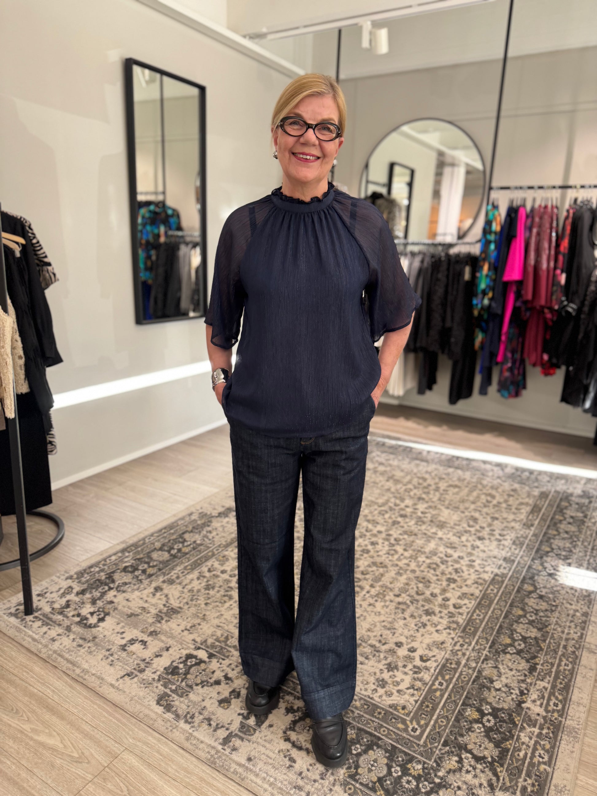 Ilmava, kevyt, väljä ja läpikuultava, nämä kuvastavat tätä hentoa Grace & Mila Topaze puseroa, jossa on on väljät 1/2 hihat, sekä sievä röyhelöllä somistettu pystykaulus. Niskassa napillinen halkio. Grace & Mila Topaze puserossa on kaunis, hillitty kimallus, ja edessä tuplakangas.