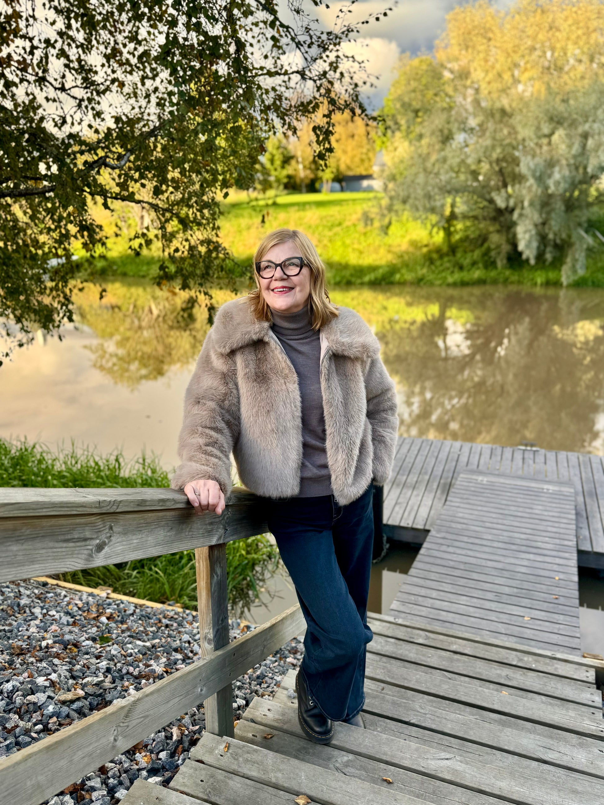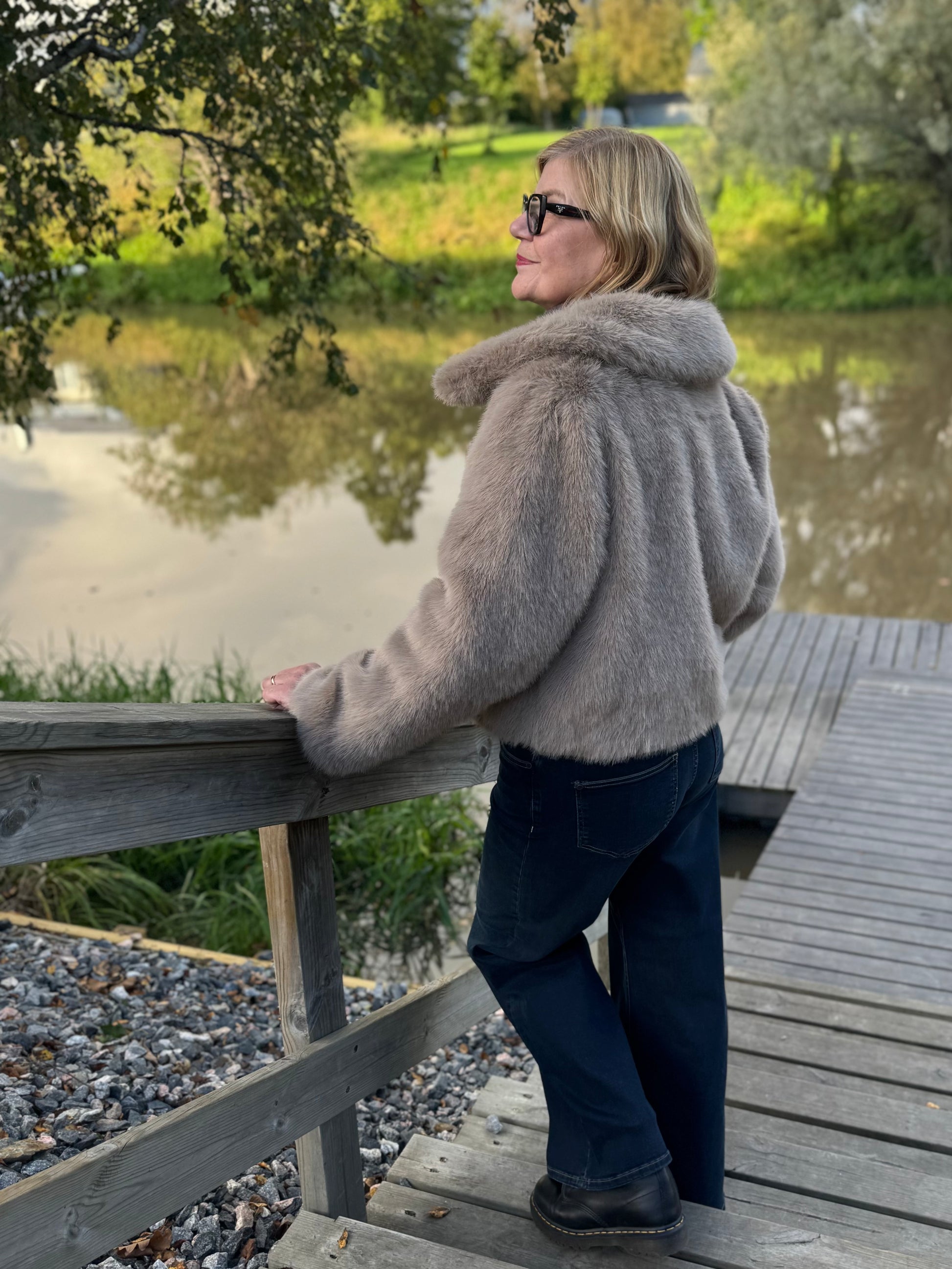 Grace & Mila Shonna tekoturkistakki luo rohkean ja tyylikkään siluetin. Takissa on lämmin, sekä suloisen pehmeä ja pörröinen, aivan silkkisen sileä materiaali. Grace & Mila Shonna takissa on suora leikkaus ja lyhyt pituus, mikä antaa modernin ja elegantin ilmeen. Takki kiinnitetään edestä vetoketjulla ja siinä on kaulukset, sekä sivutaskut.