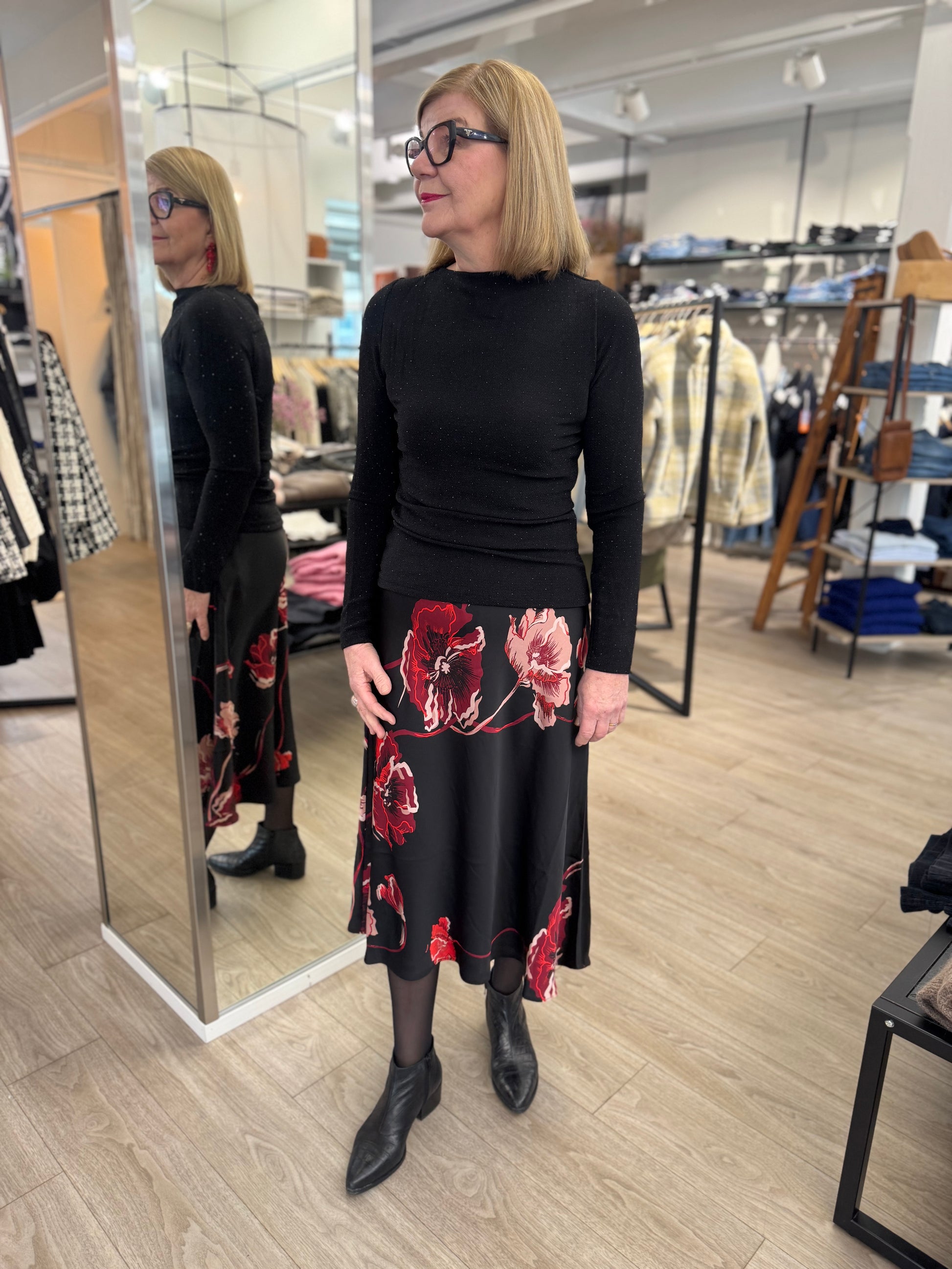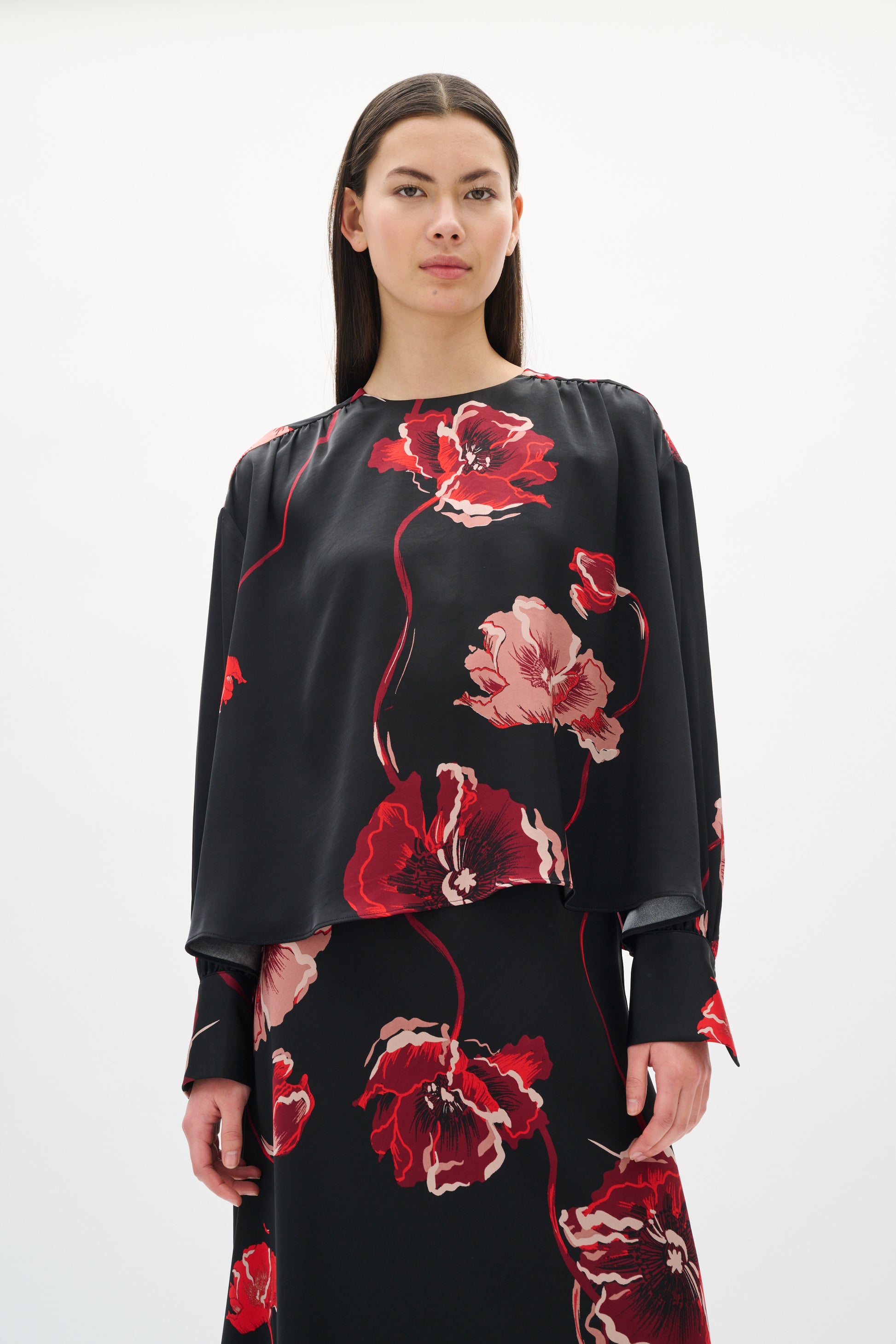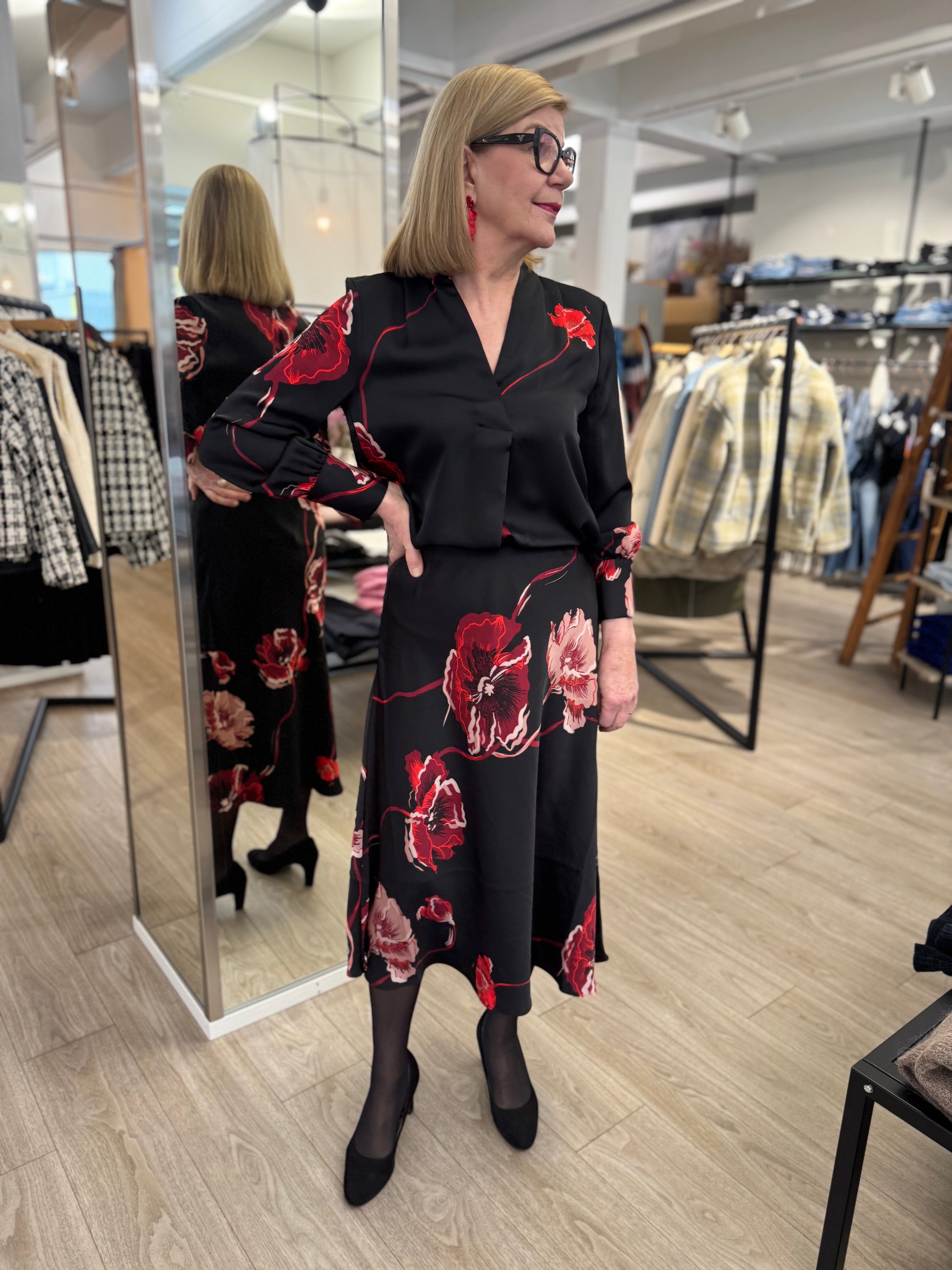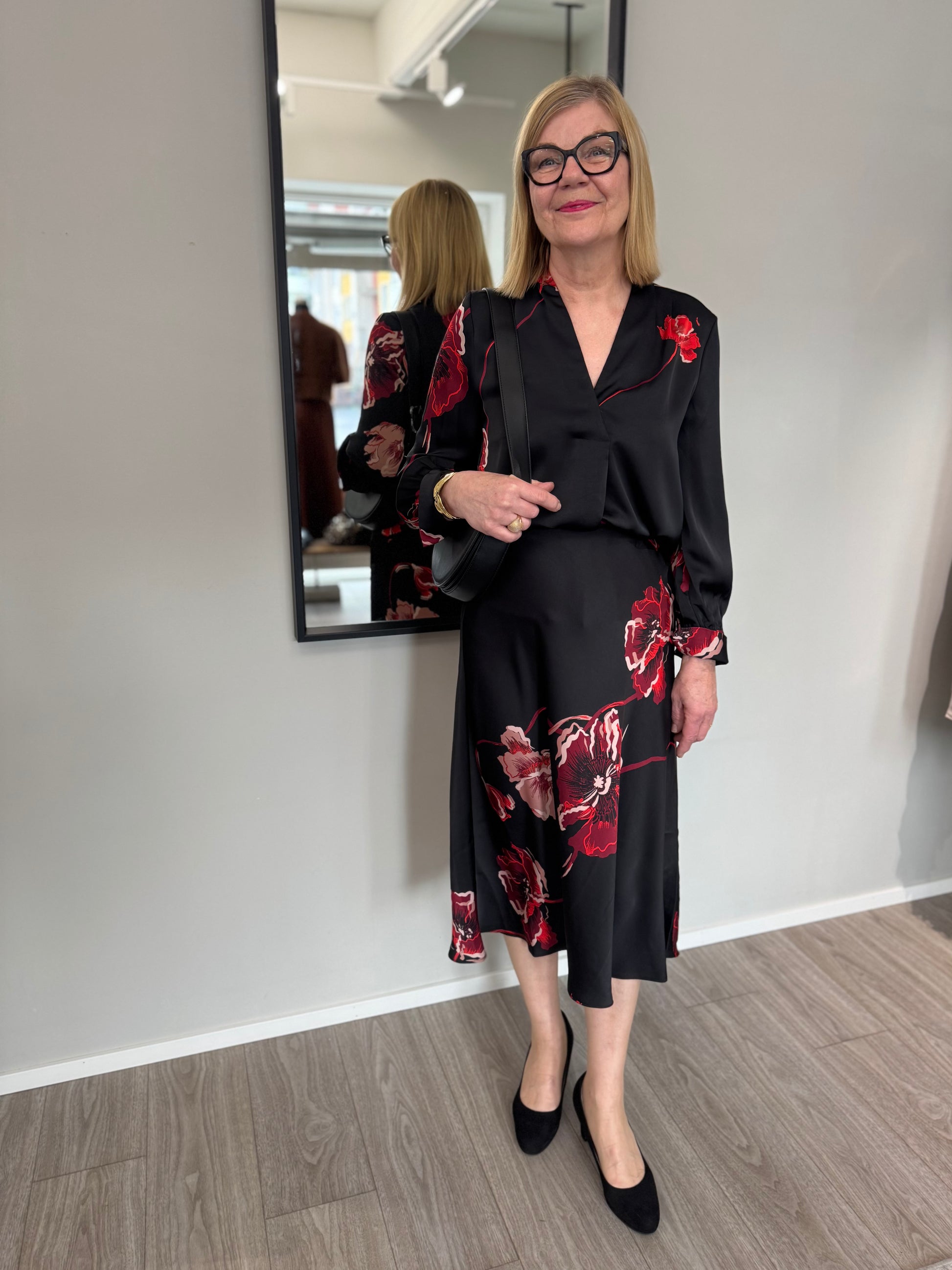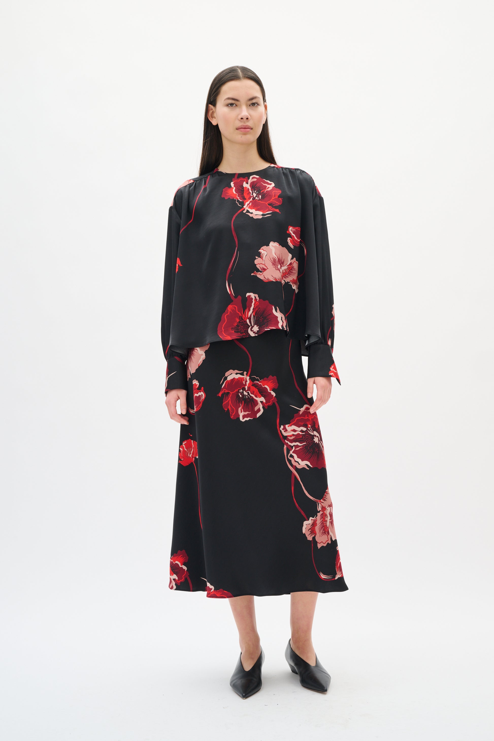 Kauniisti laskeutuva satiinipintainen InWear Dawn hame, punaisella kukkakuosilla. InWear Dawn hameessa on A-linjainen malli, midimitta, sekä kuminauhavyötärö. Yhdistä InWear Dawn puseron kanssa, saadaksesi täydellisen kokonaisuuden.