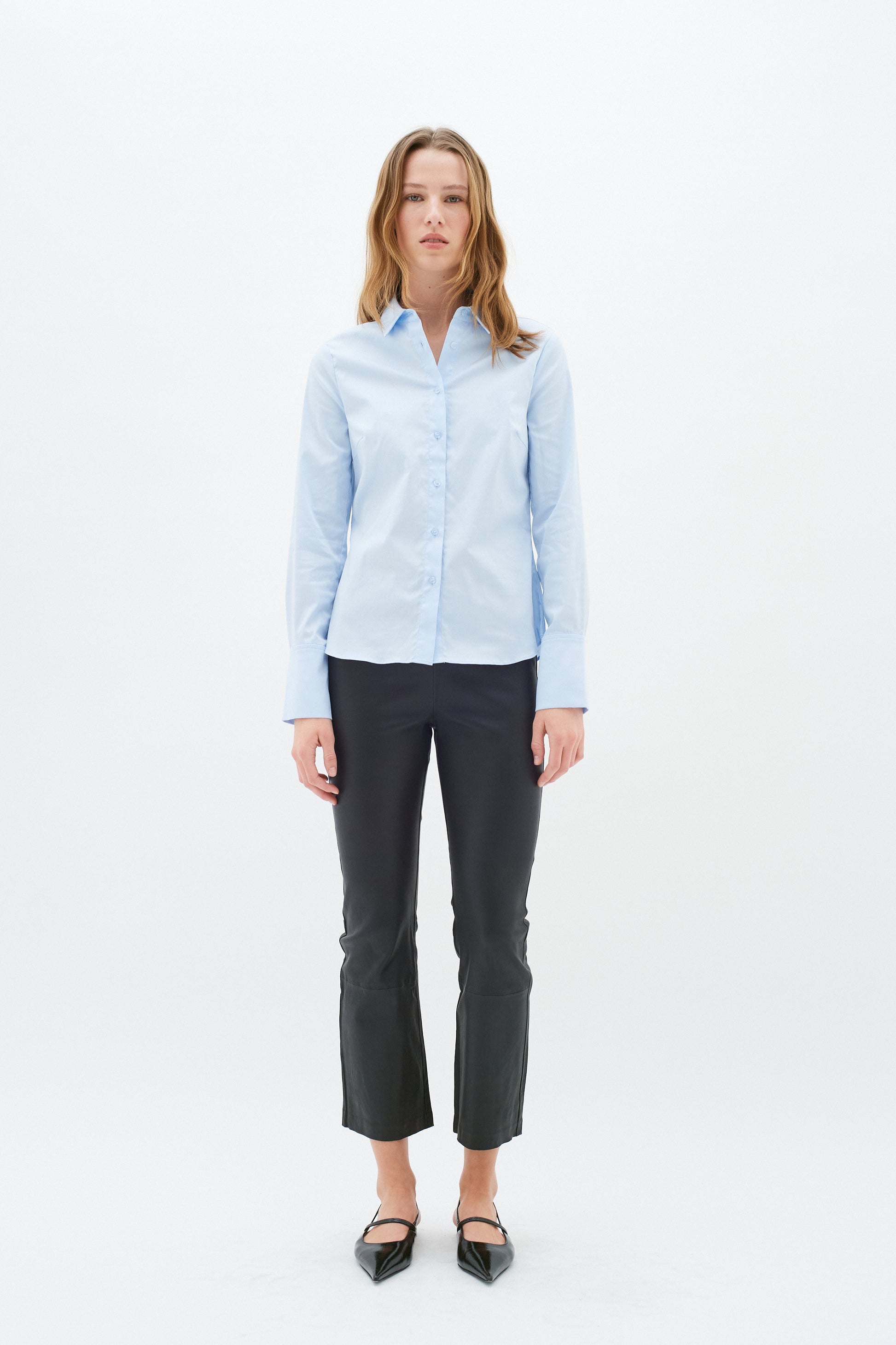 Linjakas, puuvillasatiinista valmistettu InWear Cally paitapusero, jossa on pyöristetty helma.