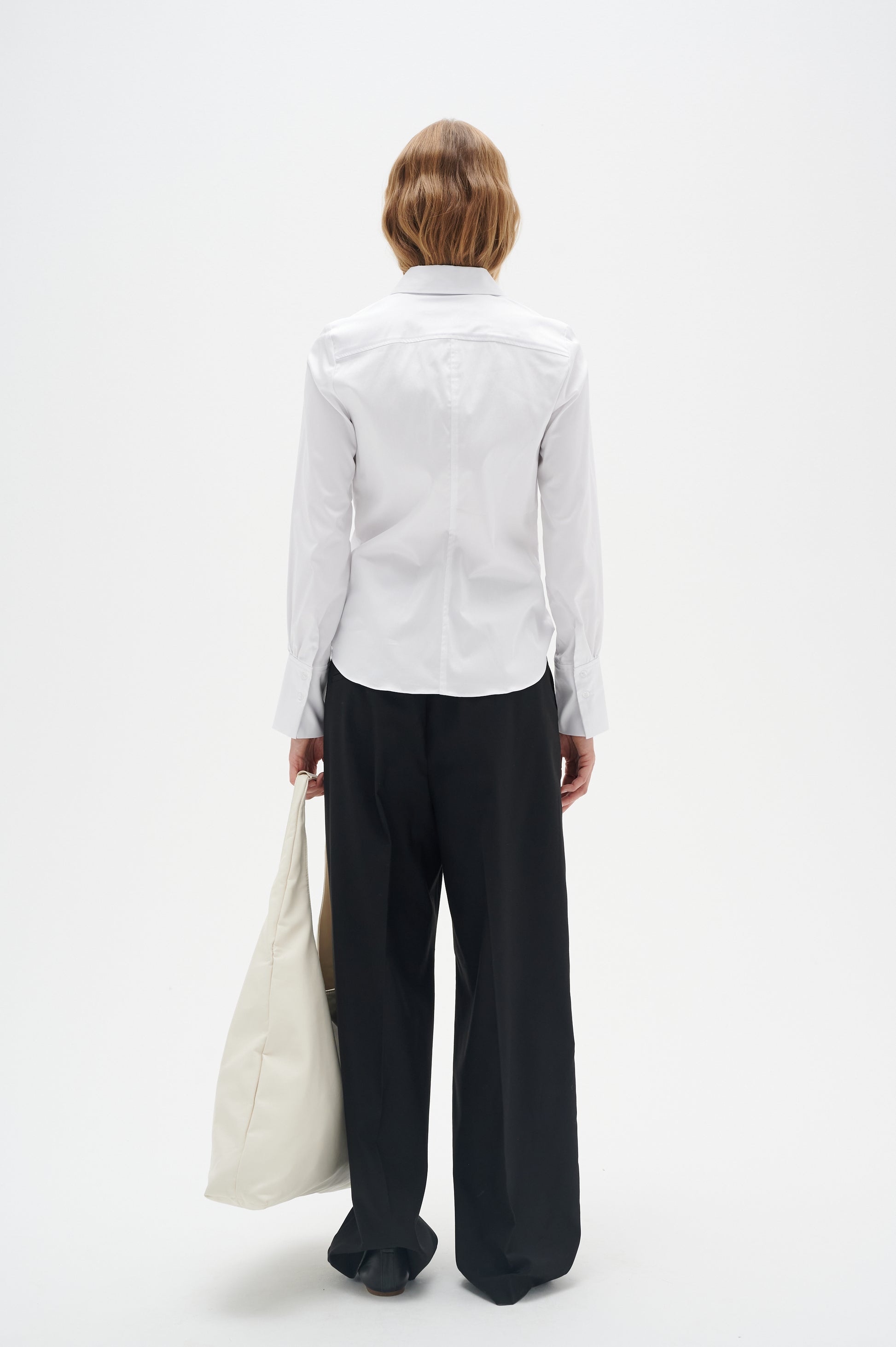 Linjakas, puuvillasatiinista valmistettu InWear Cally paitapusero, jossa on pyöristetty helma.