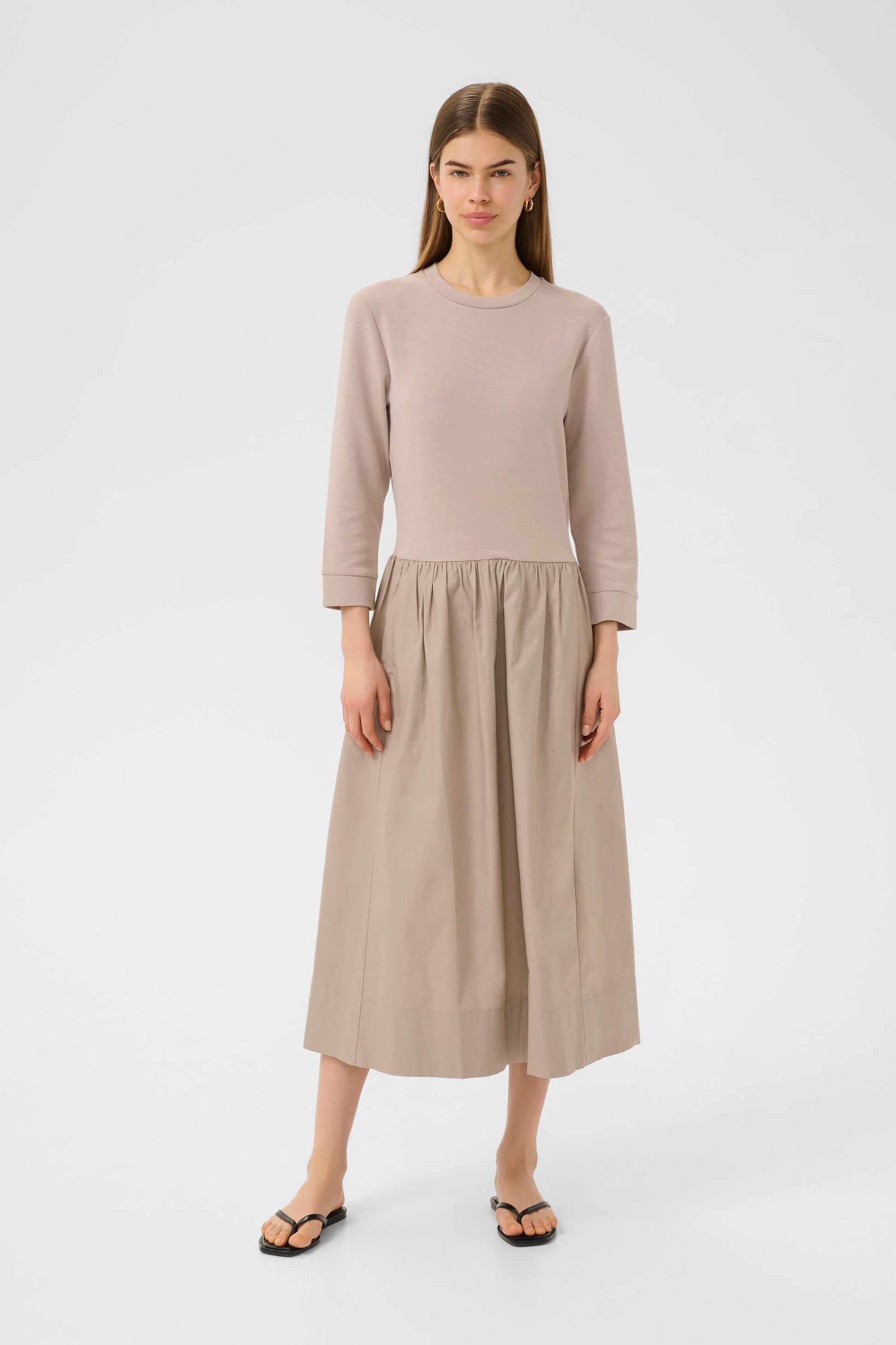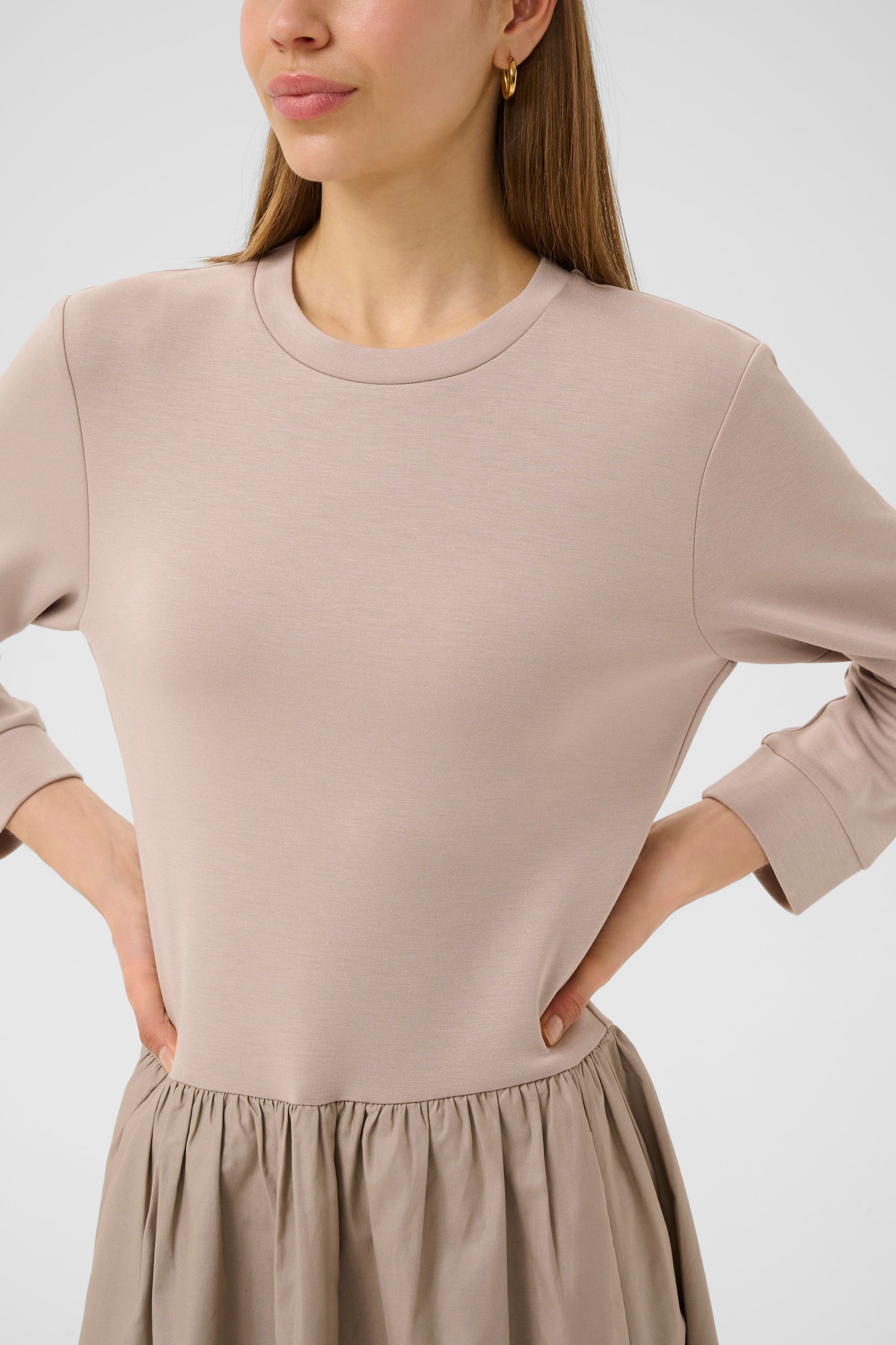 Naisellinen InWear Mira mekko, jonka istuva yläosa on valmistettu superpehmeästä ja joustavasta modal sekoitteesta ja runsas alaoasa puuvillapopliinista. InWear Mira mekossa on pyöreä pääntie, 3/4 hihat, sekä sivutaskut.
