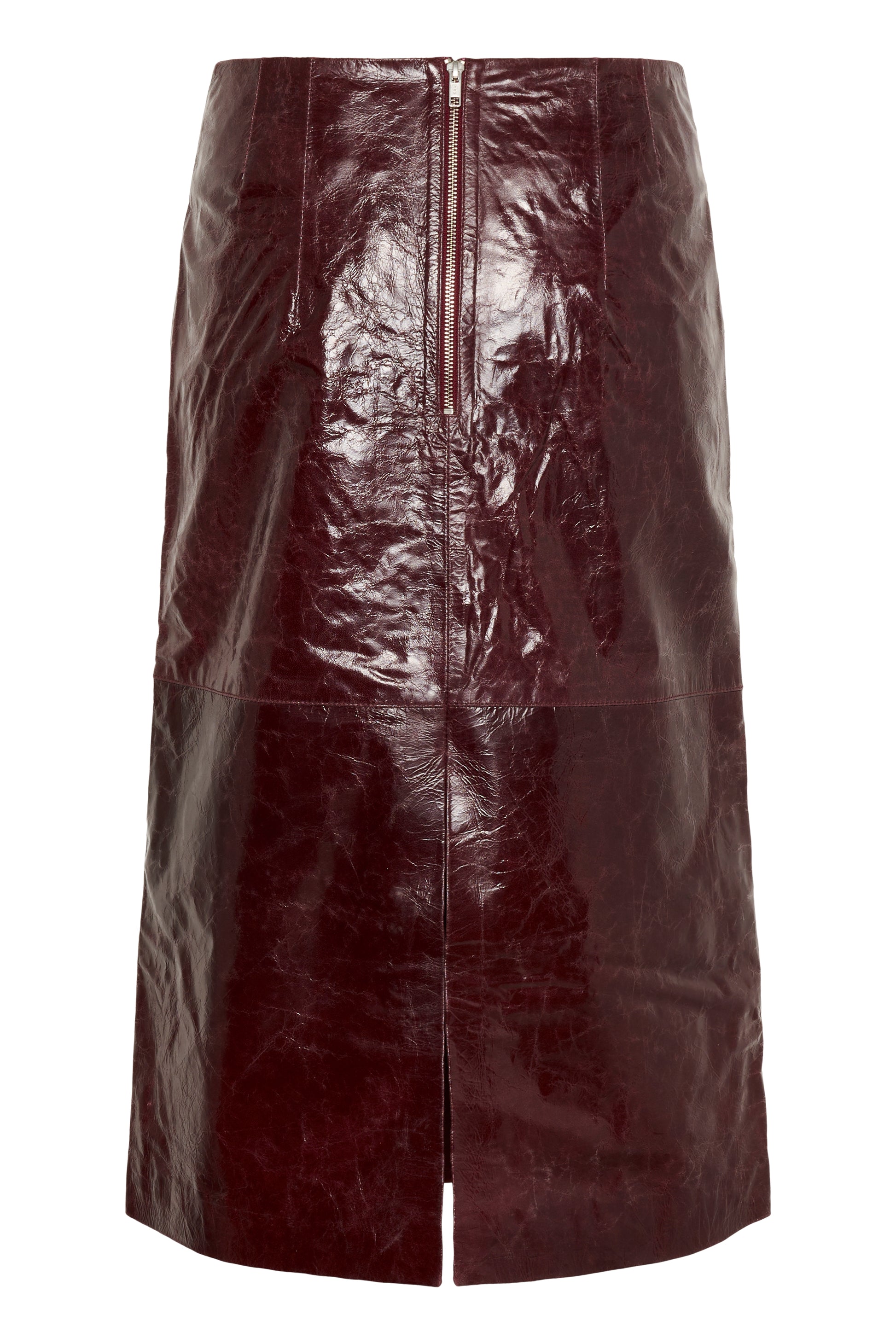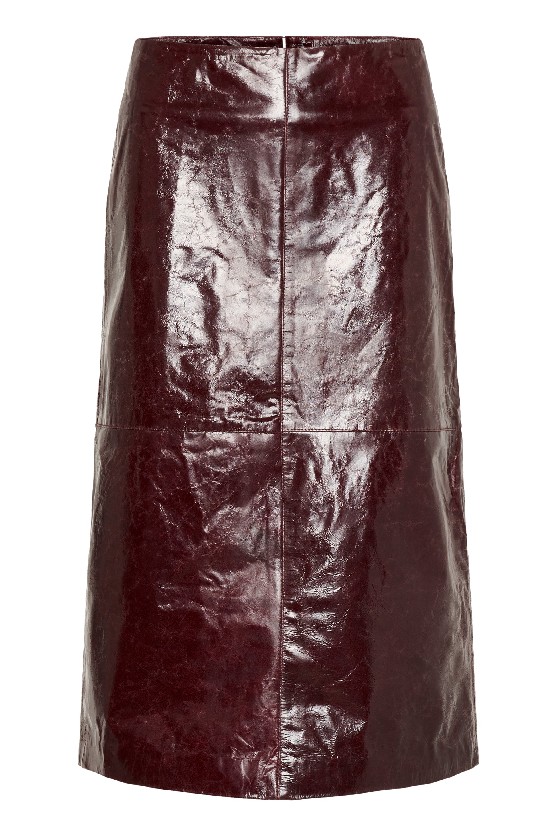 Tämä kiiltävästä, hieman kovetetusta viininpunaisesta nahasta valmistettu midimallinen Part Two Sinja hame on rohkean ja hienostuneen näköinen. Suunniteltu suoralla leikkauksella ja näkyvillä saumoilla, jotka antavat sille lisäsärmää. Hameessa on takana vetoketju ja halkio. Vuorattu joustavalla satiinilla. Yhdistä Part Two Sinja hame yksinkertaisen t-paidan kanssa arkikäyttöön tai paidan ja korkokenkien kanssa iltalookiin.