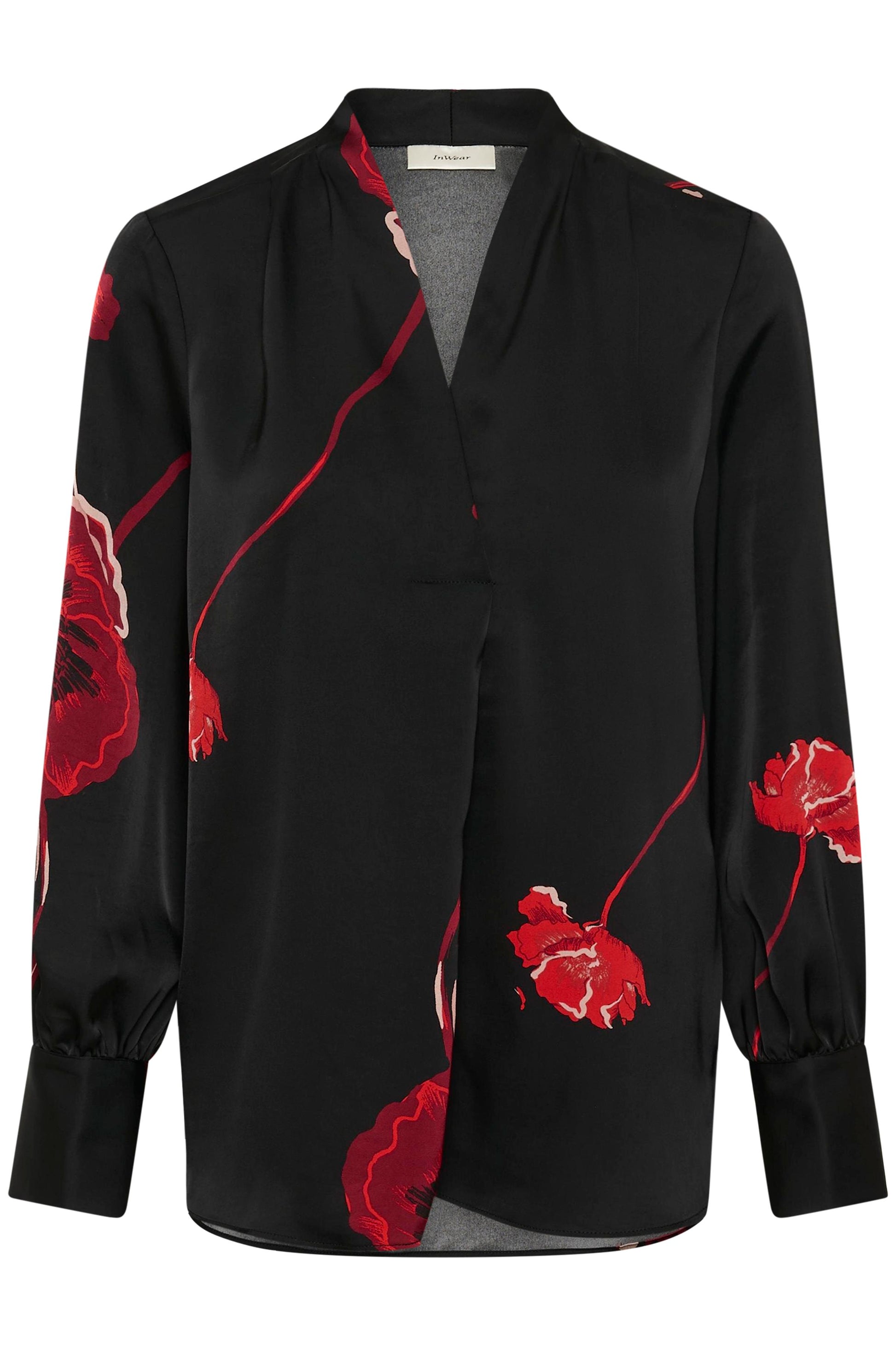 Kauniisti laskeutuva satiinipintainen InWear Dawn pusero, punaisella kukkakuosilla. InWear Dawn puserossa on väljä malli, pyöristetty helma, joka on takaa hieman pidempi. V-pääntie, sekä hihansuissa mansetit. Yhdistä InWear Dawn hameen kanssa, saadaksesi täydellisen kokonaisuuden.
