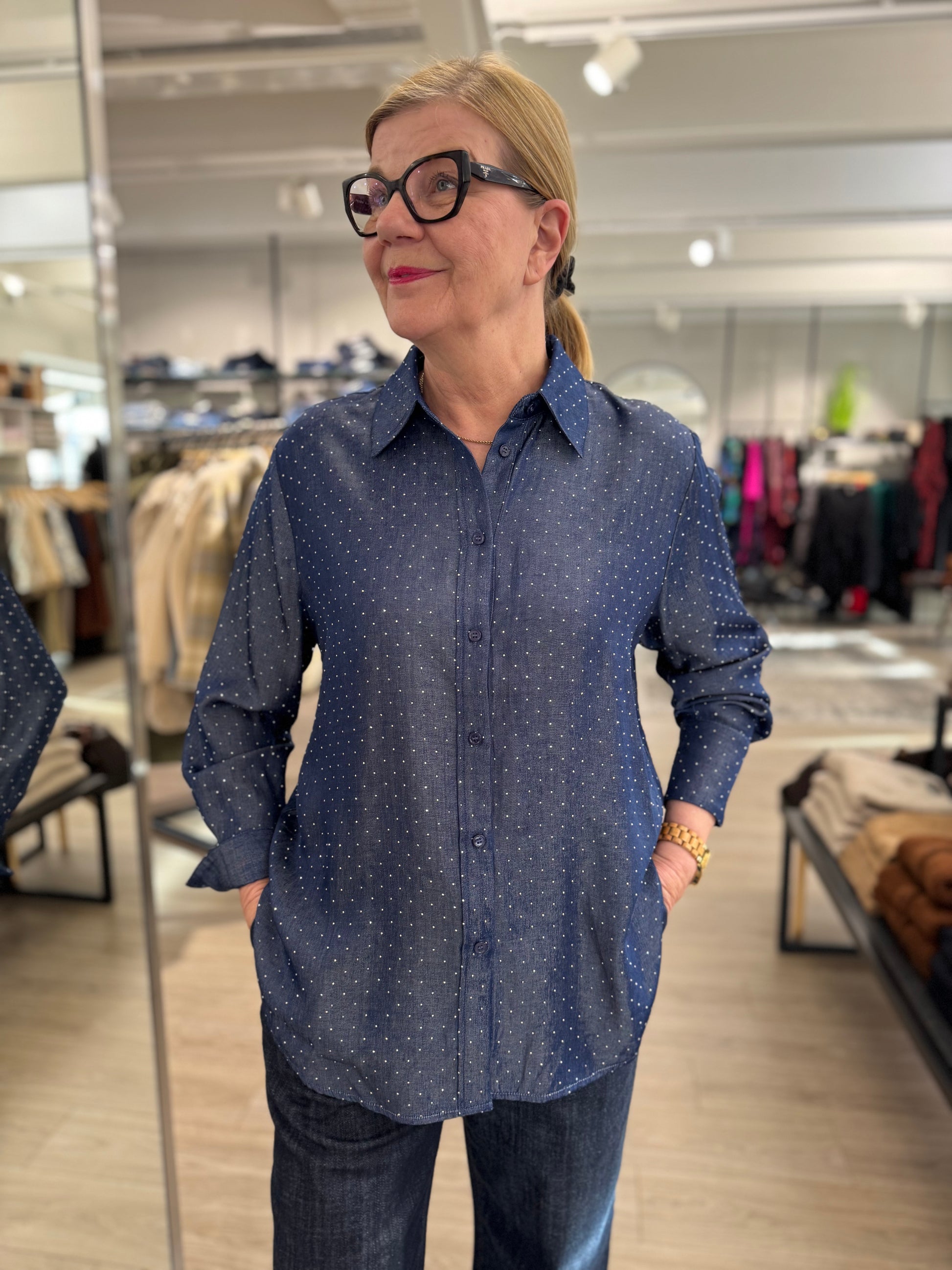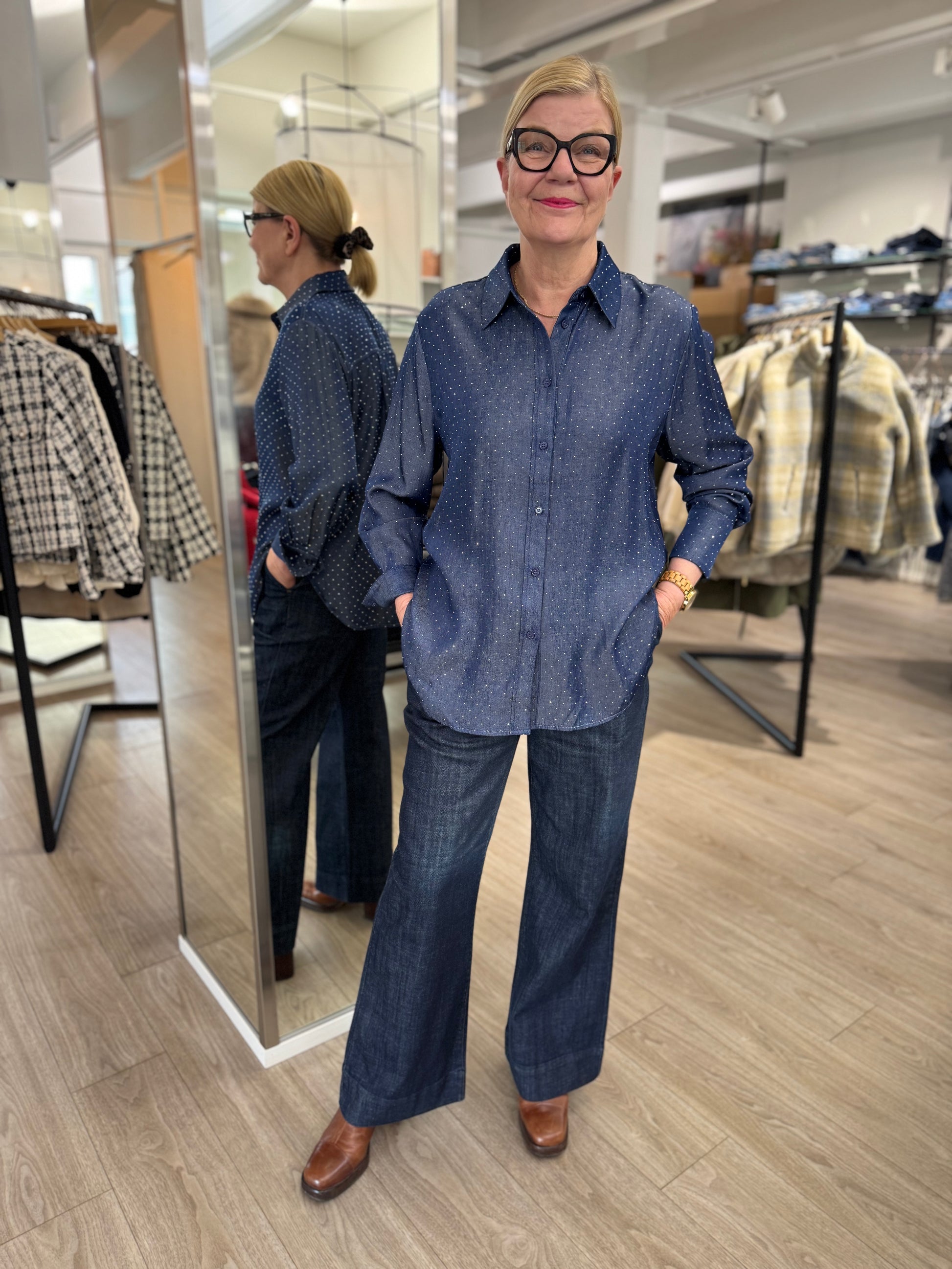 ISay Kate paitapusero on klassinen paita kimaltelevalla twistillä. Pienet, huomaamattomat strassit antavat elegantin hohtavan efektin, joka vangitsee valon olematta kuitenkaan liikaa – täydellinen sekä arkeen että erityistilaisuuksiin.
