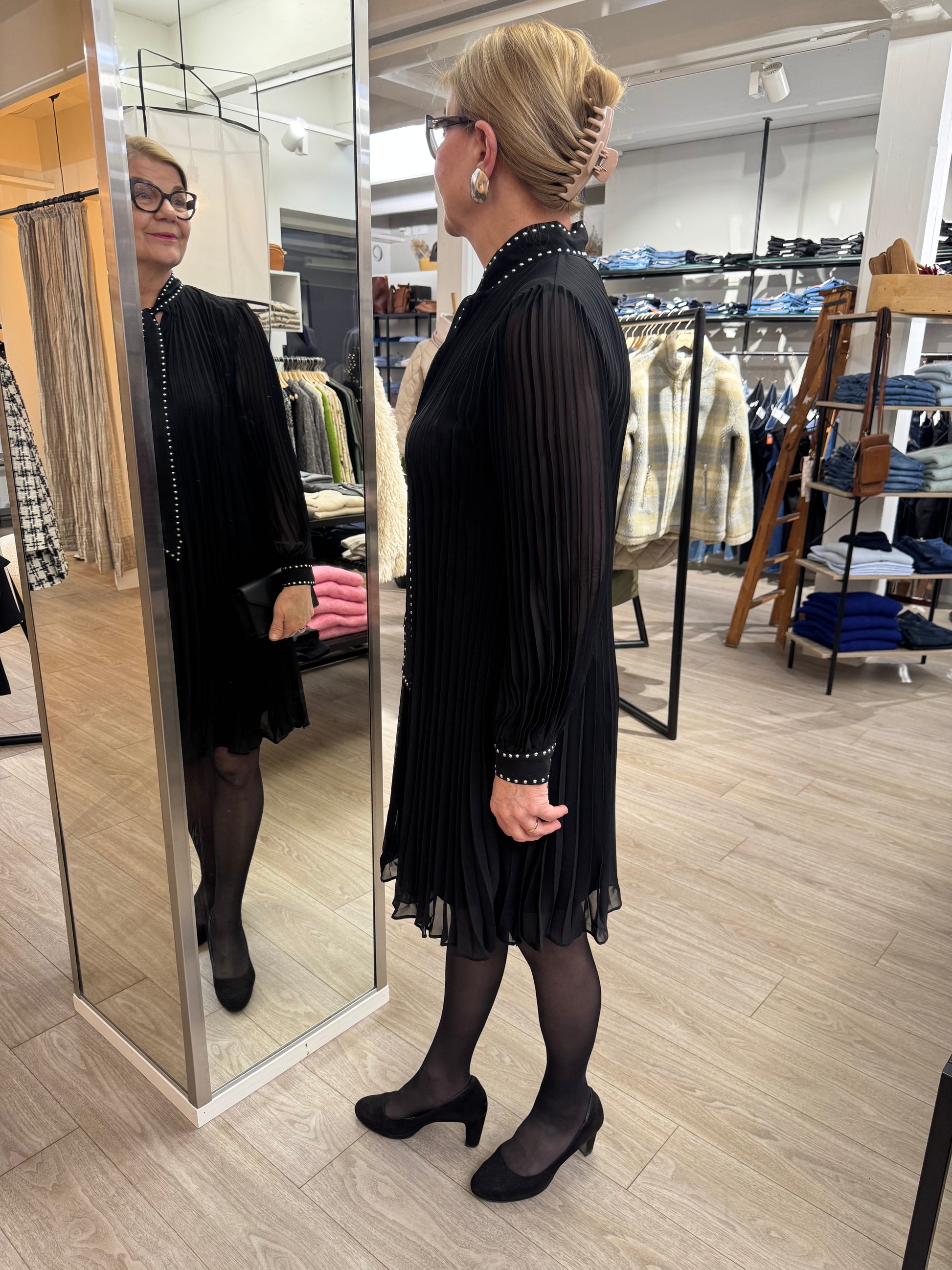 Tässä elegantissa Joseph Ribloff 254902 mekossa on pliseerattu A-linjainen malli, sekä niiteillä koristeltu viehättävä rusetti ja hihansuut. Joseph Ribkoff 254902 mekko sopii täydellisesti sekä muodollisiin, että rennompiin tilaisuuksiin. Joseph Ribkoff mekko on valmistettu läpikuultavasta sifongista ja siinä on joustava vuori.