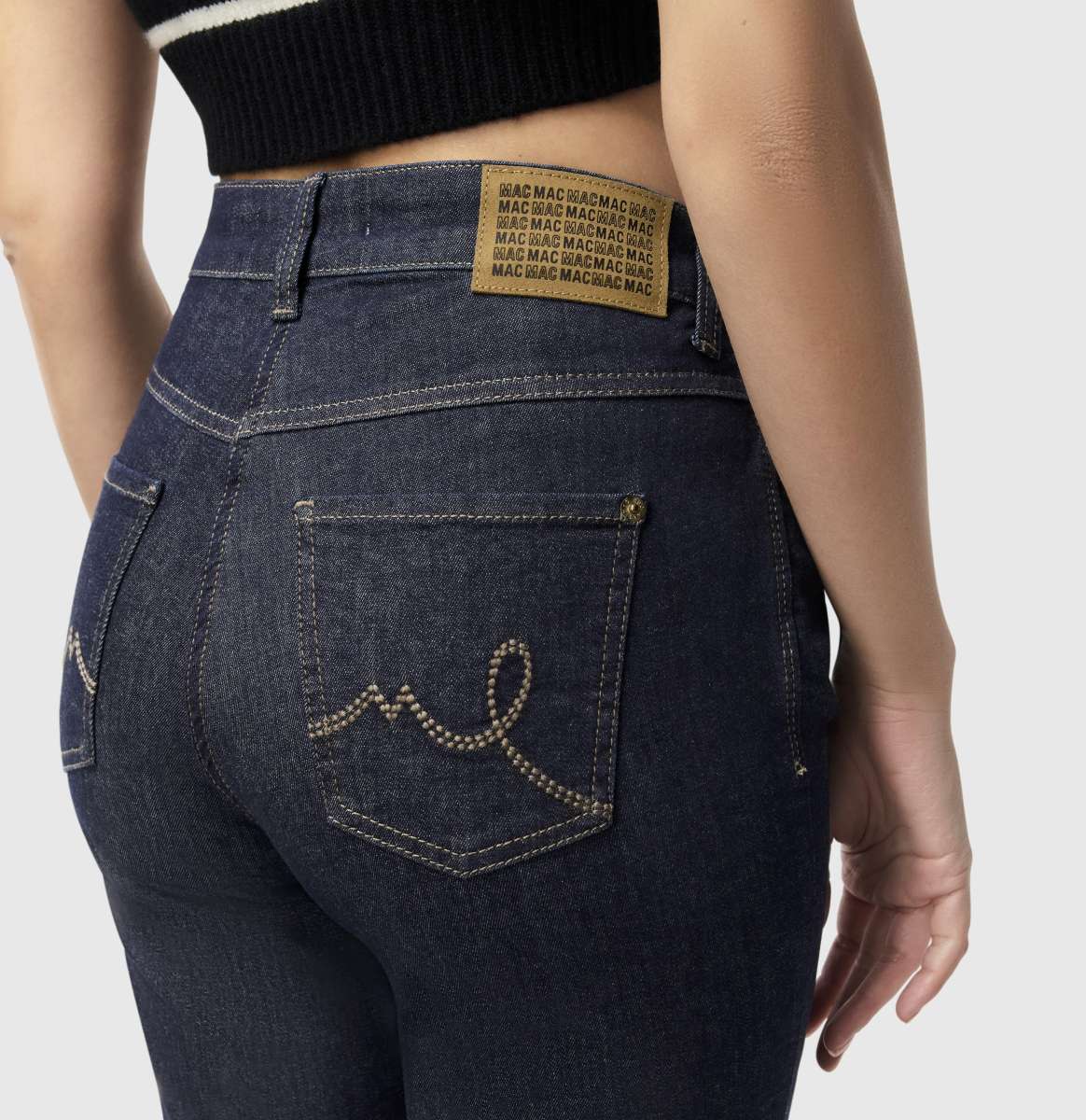 Siistit ja klassiset Mac Laura Bootcut farkut normaalilla vyötärönkorkeudella. Mac Laura farkut on valmistettu miellyttävän pehmeästä ja joustavasta materiaalista, myös vyötärökaitale joustaa. Farkuissa on tummansininen tasainen sävy ja farkkutikkaukset. Reisistä ja polvista napakasti istuva, lahkeeseenpäin hillitysti levenevä malli, johon edessä ja takana olevat prässit antavat Mac Laura farkuille huolitellun ilmeen. Farkuissa on 32 tuuman lahkeenpituus.