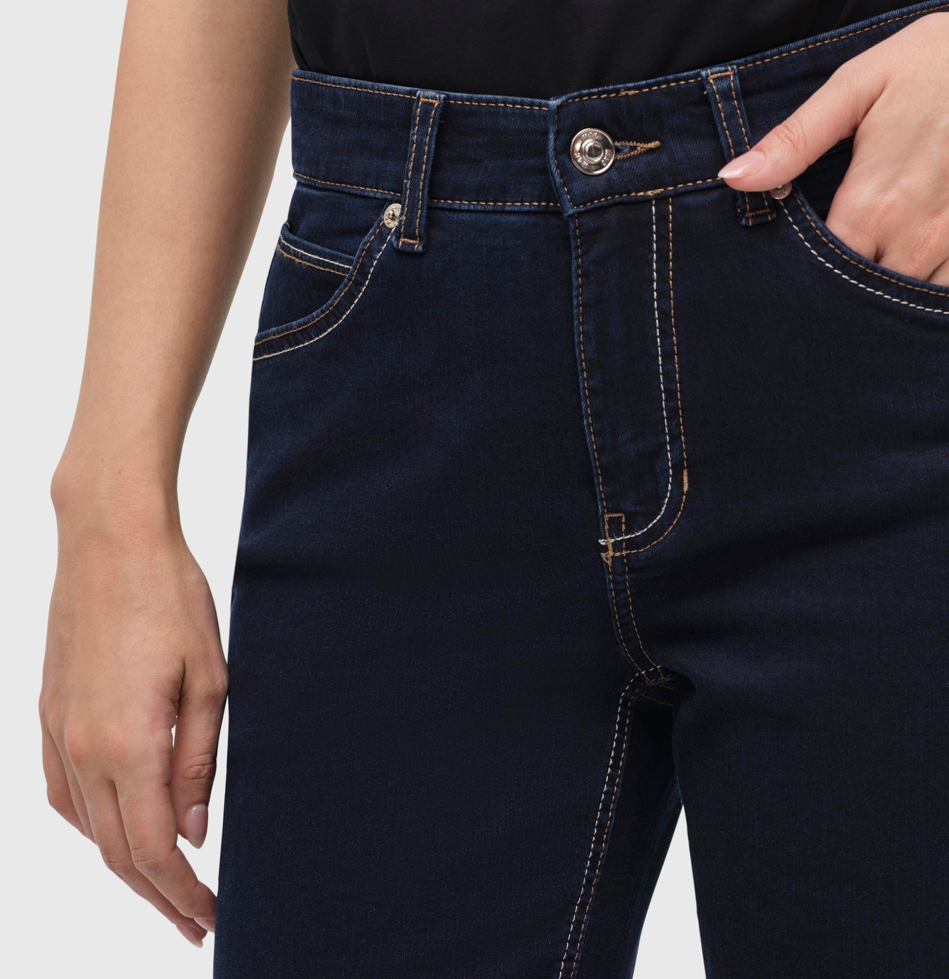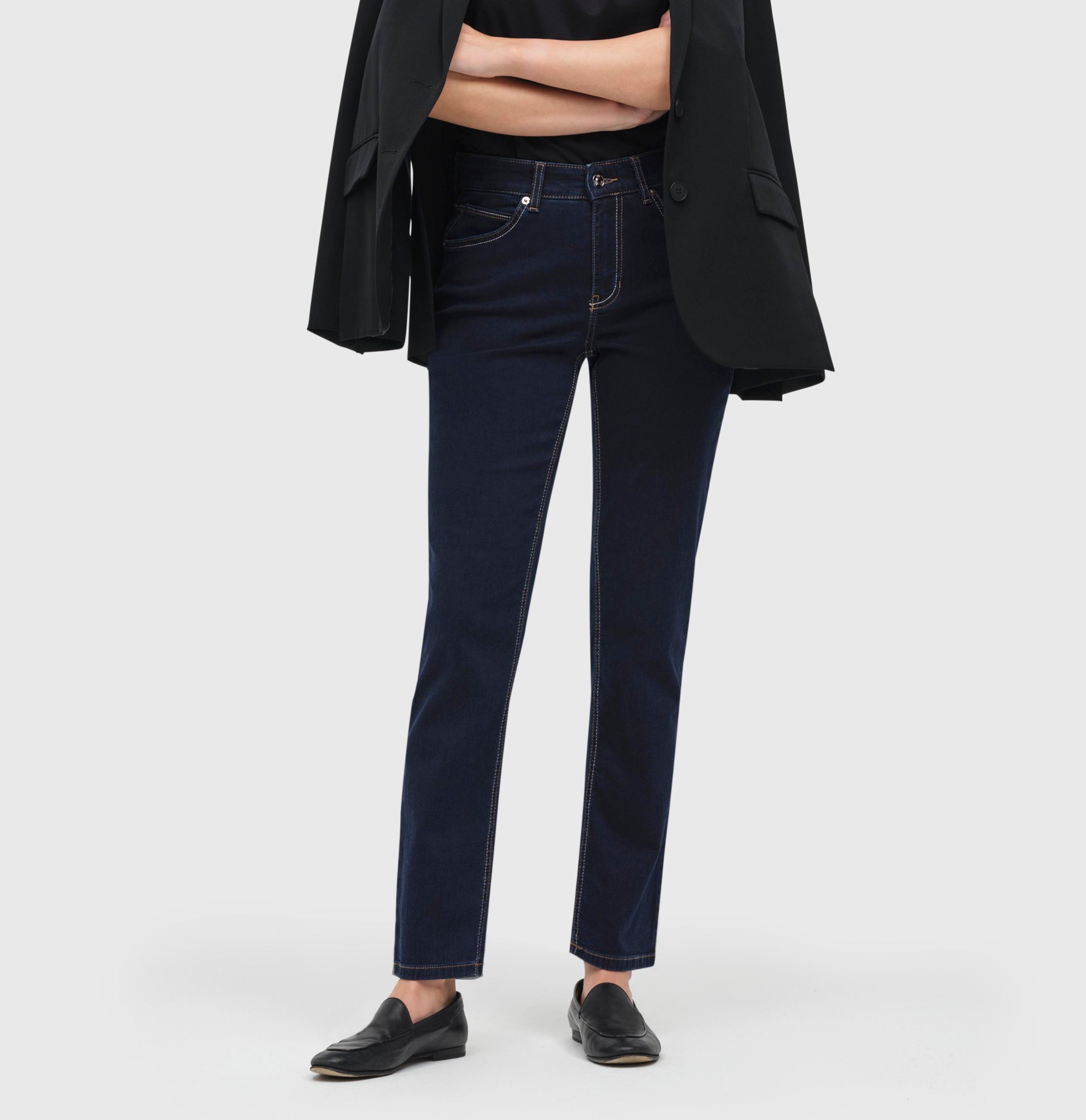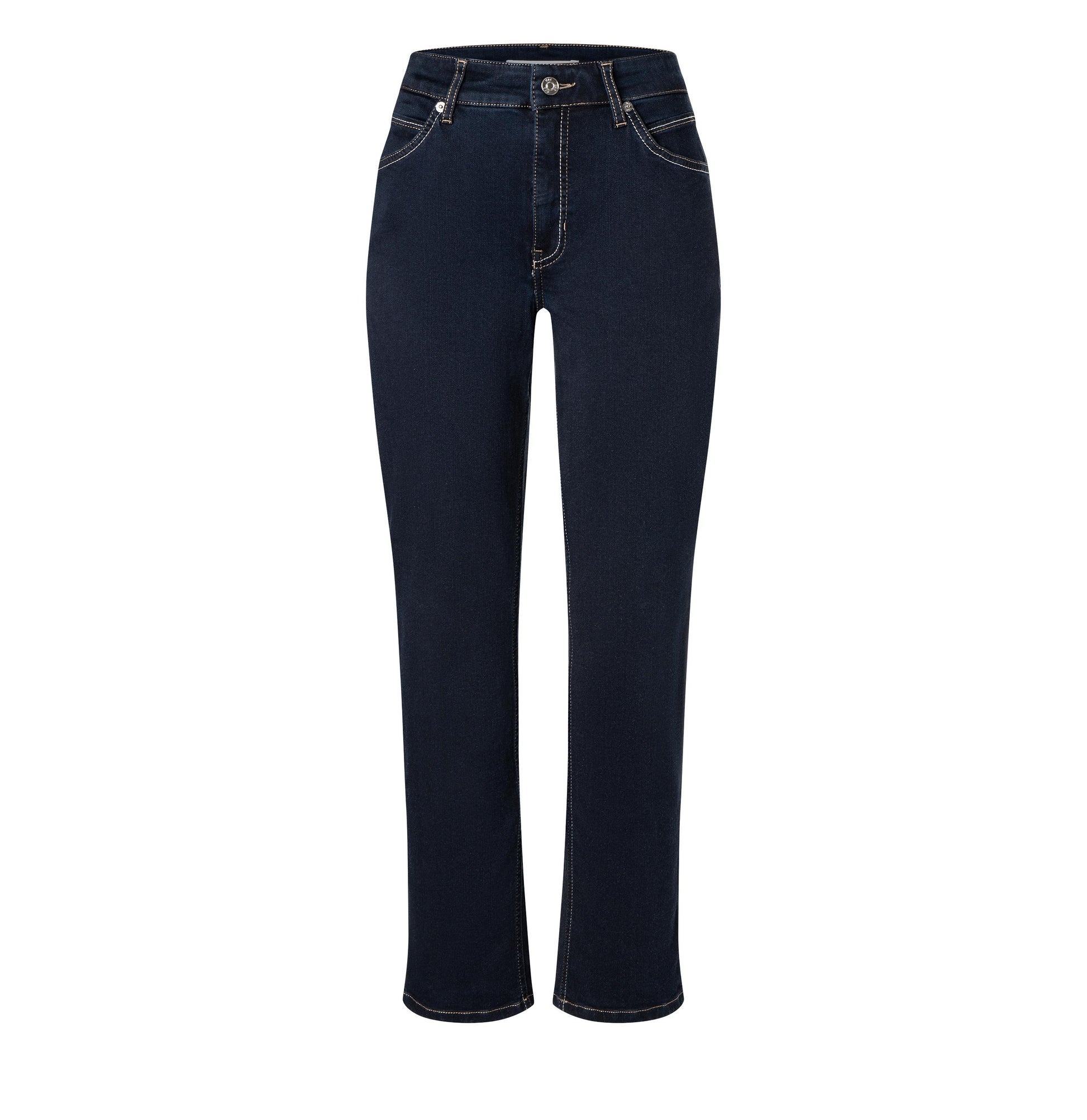 Hyvä perusfarkku, joissa korkea vyötärö, suorat lahkeet ja kapea istuvuus. Naisellinen mitoitus. Miellyttävän joustava materiaali.