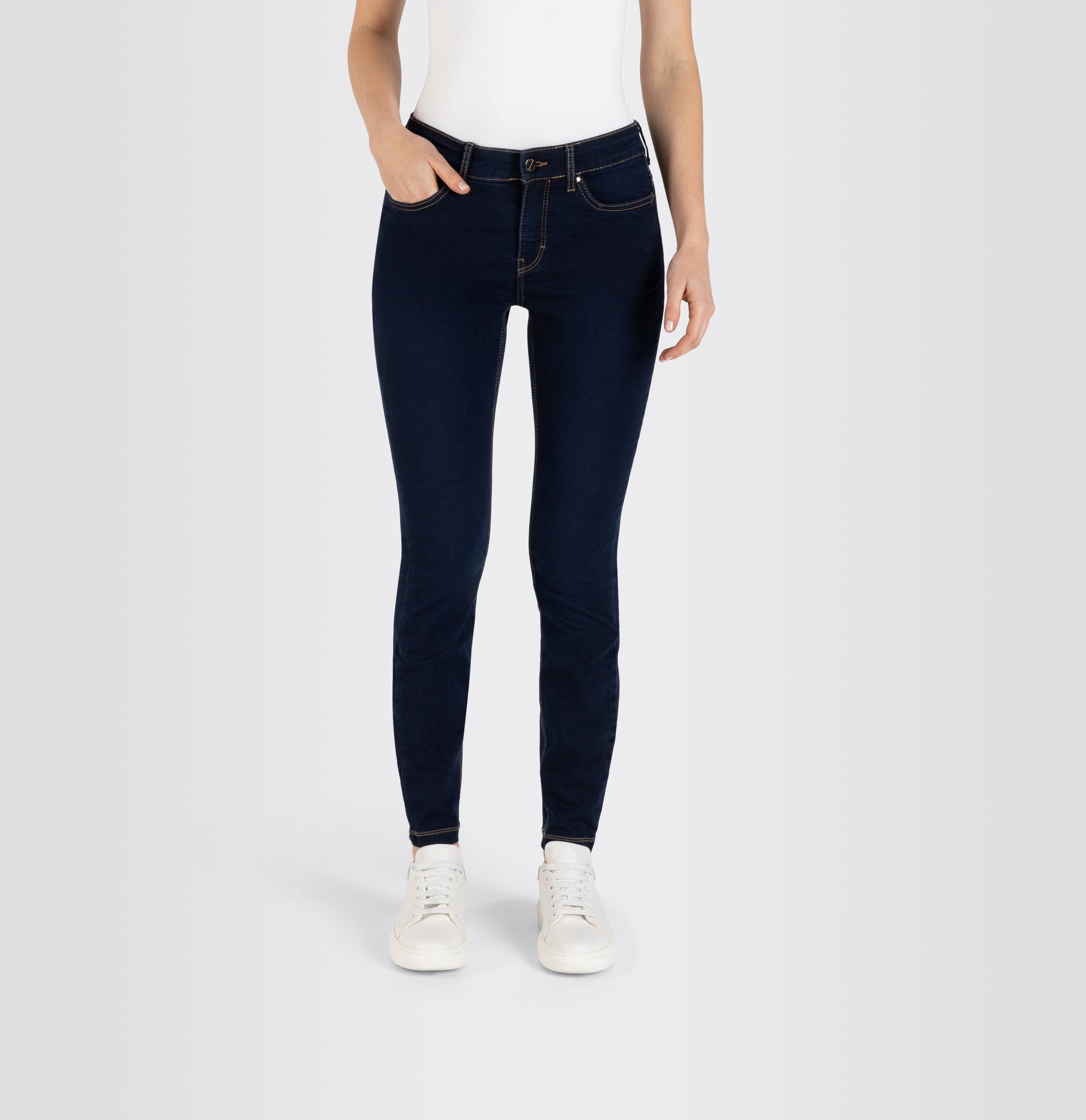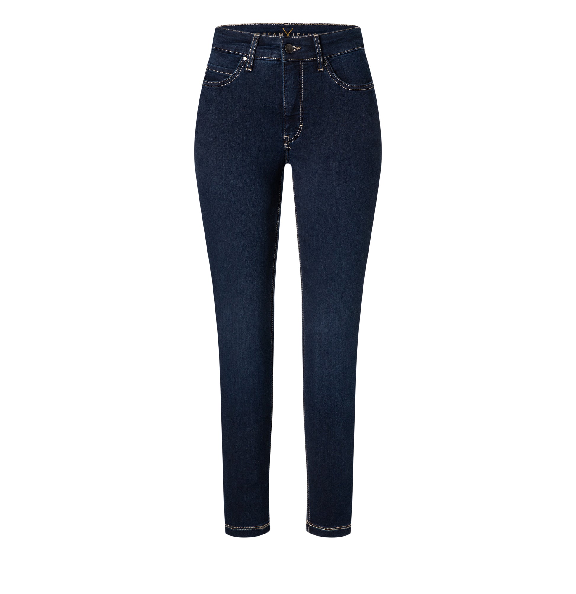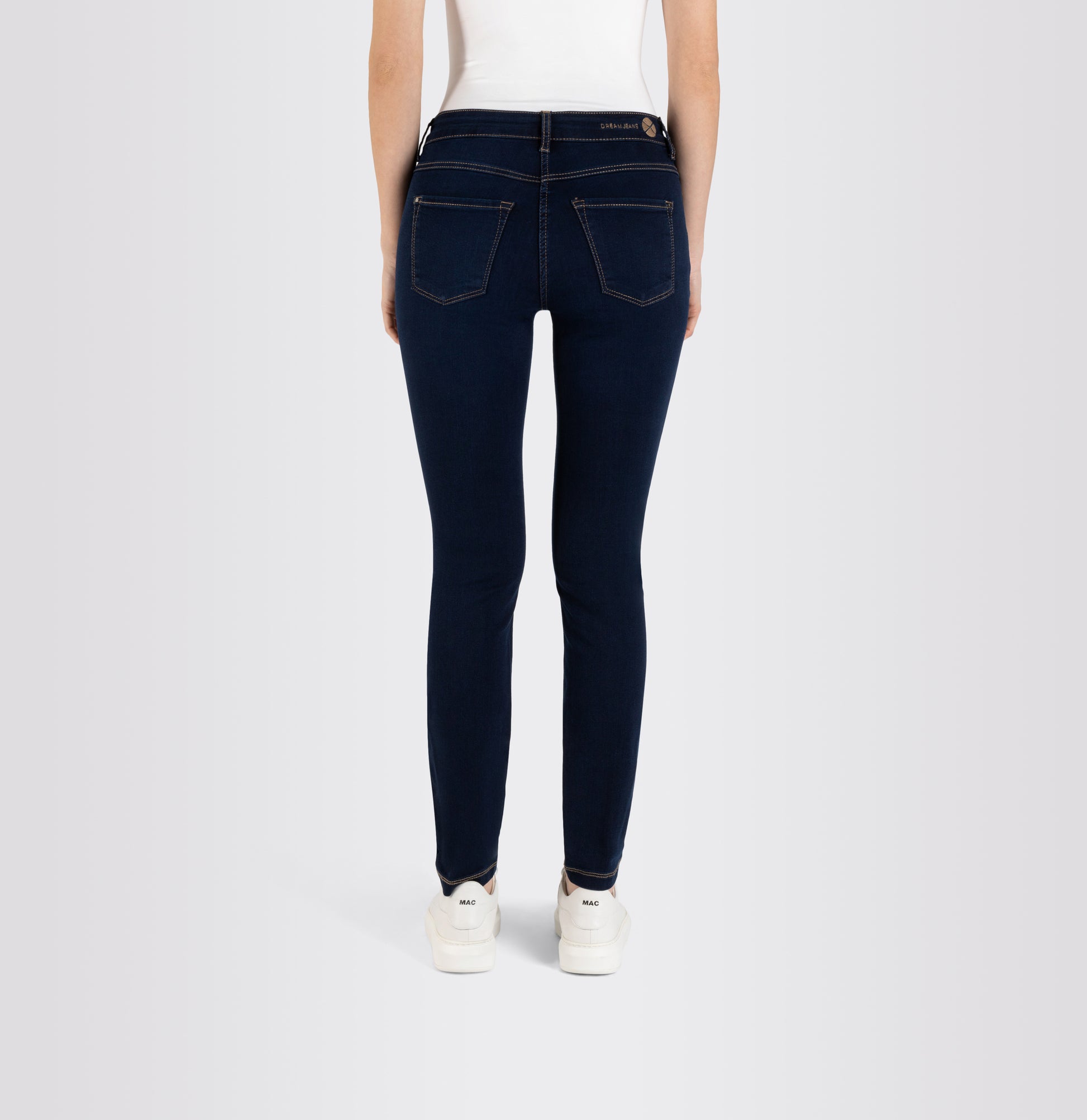 Kapealinjaiset Mac Dream Skinny farkut normaalilla vyötäröllä ja 30 tuuman lahkeen pituudella. Mac Dream Skinny farkut on valmistettu miellyttävästä, erittäin joustavasta materiaalista, joissa myös vyötärökaitale joustaa. Tummansininen väri jossa näkyvät farkku tikkaukset.