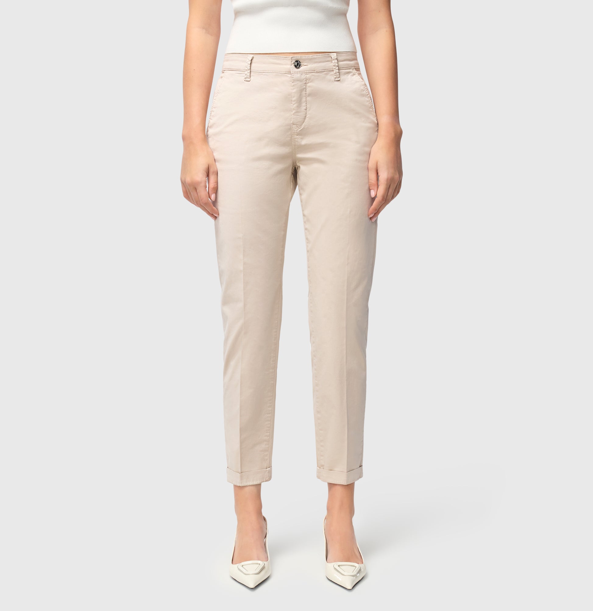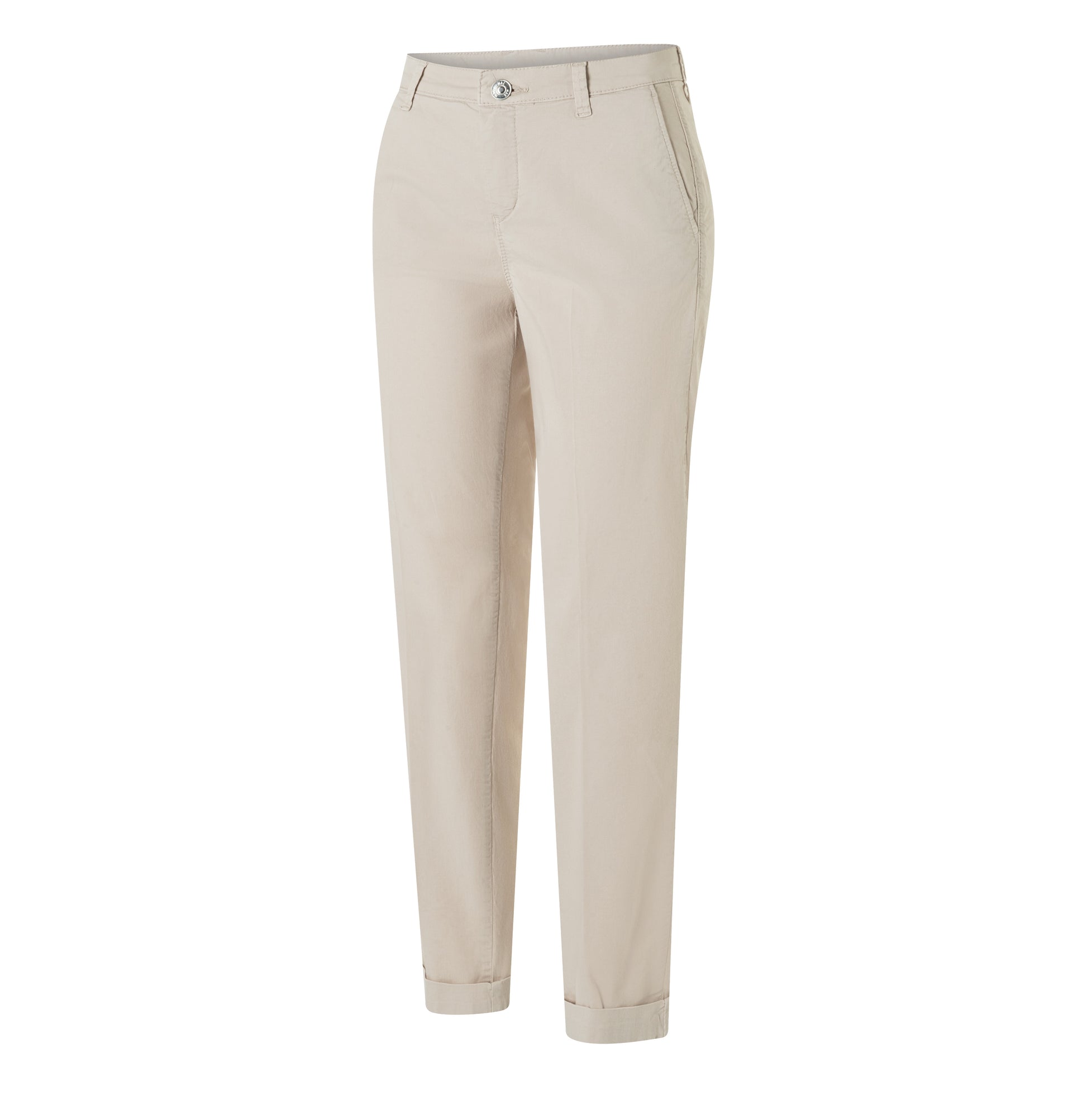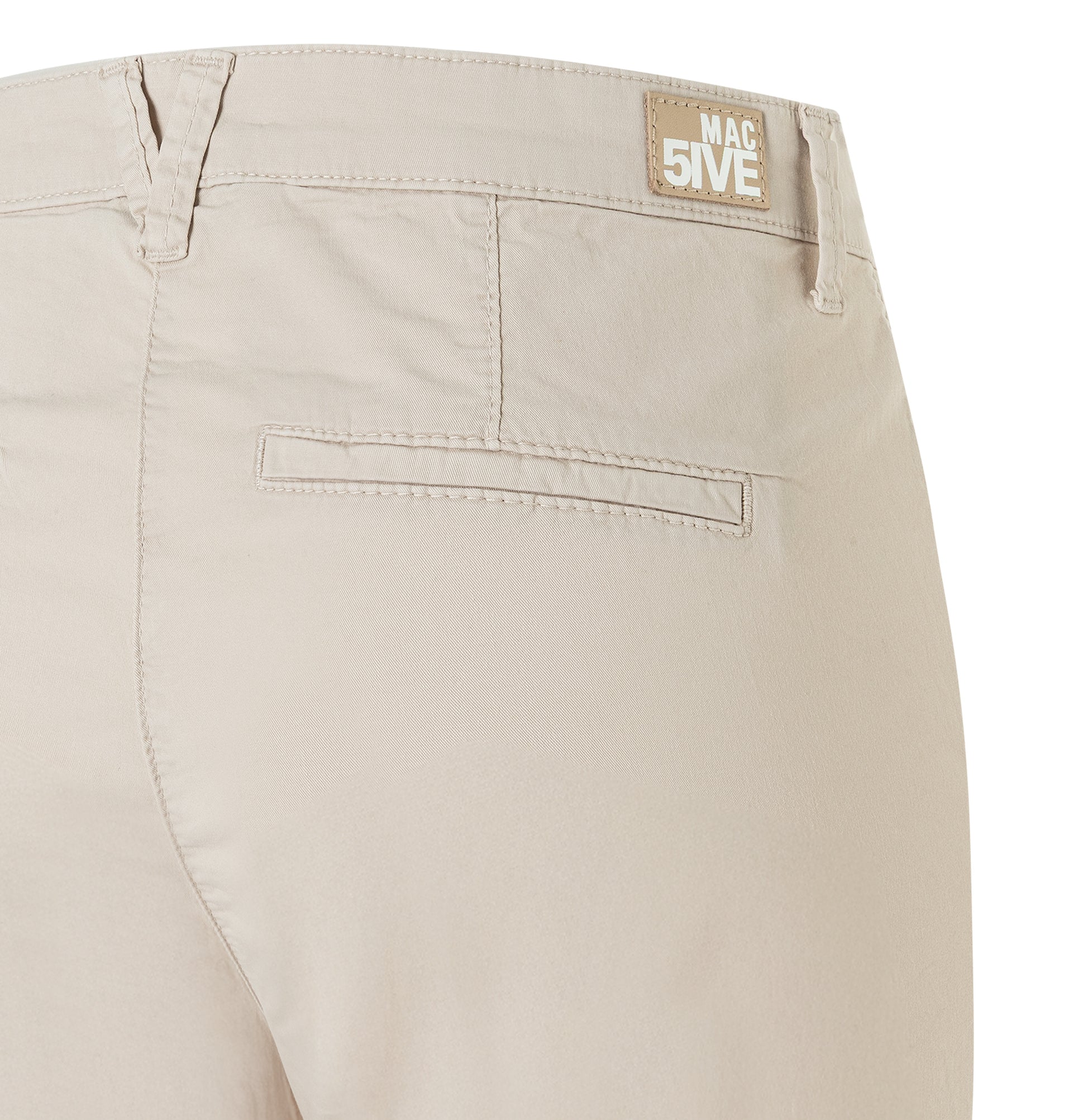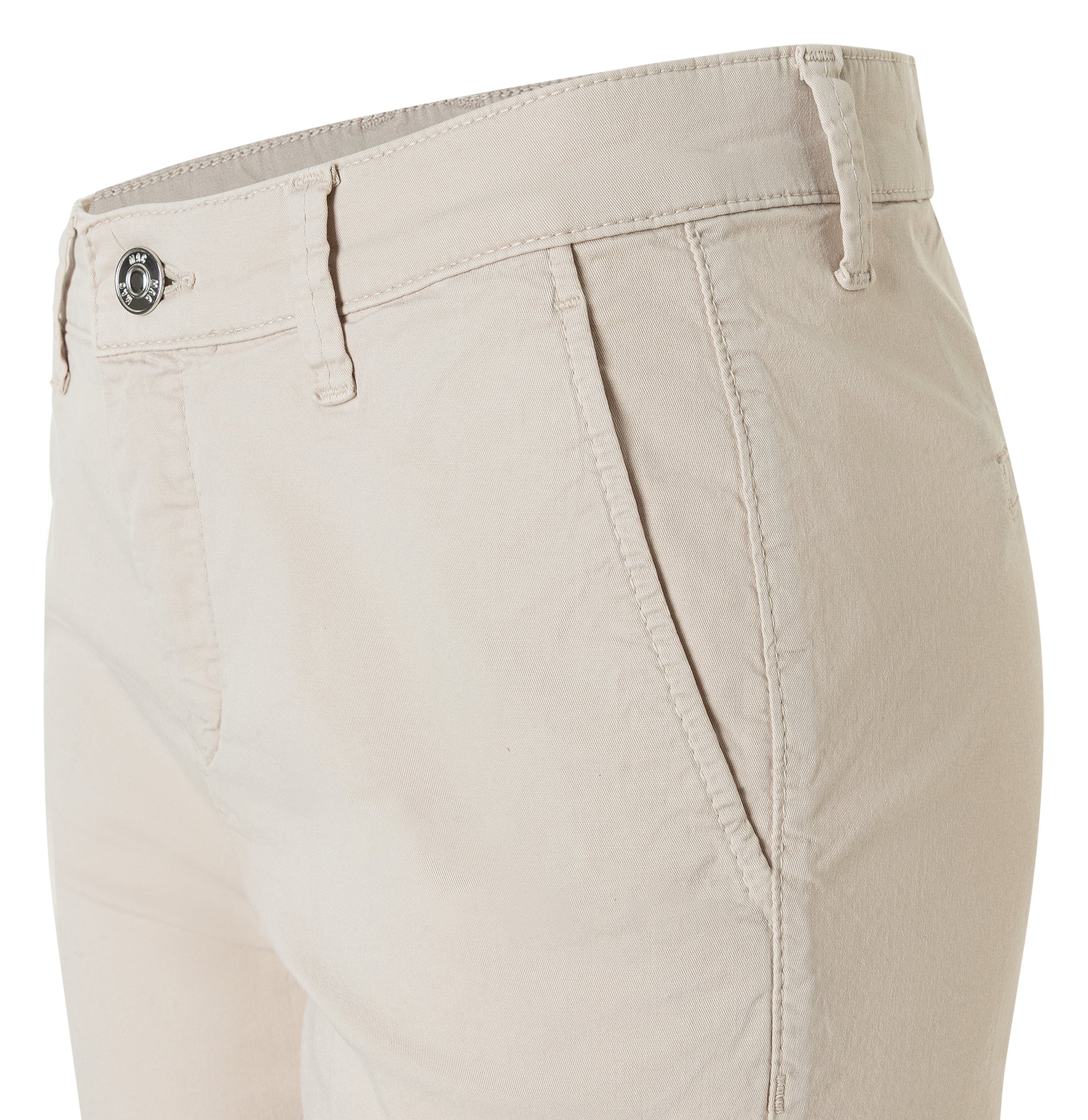 Siistit ja kevyet Mac Chino housut, joissa on viistotaskut ja takana listataskut. Mac Chino housuissa on hieman lyhyempi lahkeenmitta. Ajaton vaalea sävy.