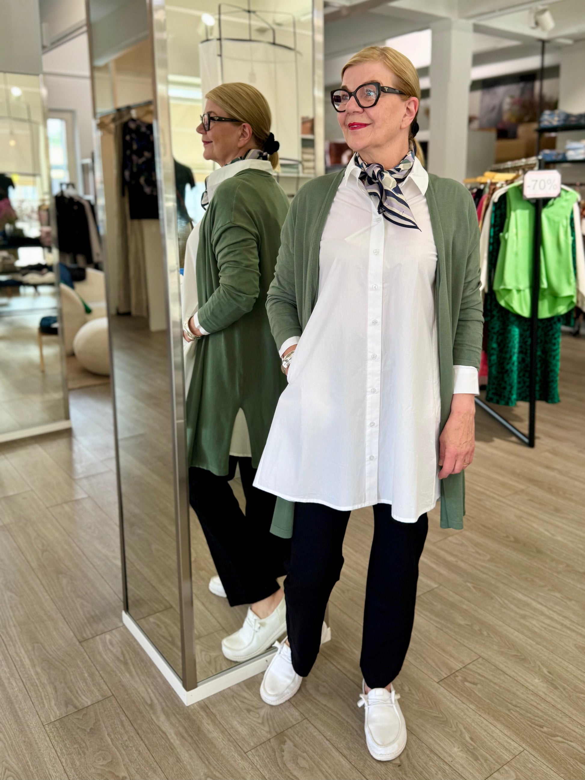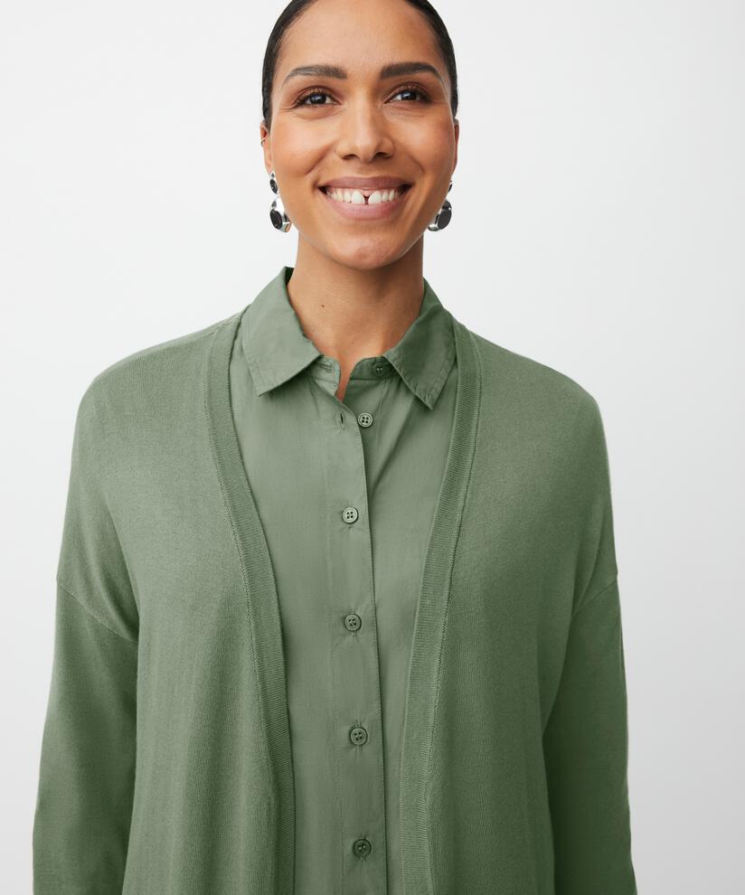 Pitkä neuletakki on ajaton suosikki. Masai Lon neuletakki on neulottu kevyestä ja pehmeästä kankaasta, ja siinä on klassinen leikkaus. Pitkät, kapeat hihat ja korkeat halkiot sivuilla korostavat eleganttia ja yksinkertaista ilmettä.