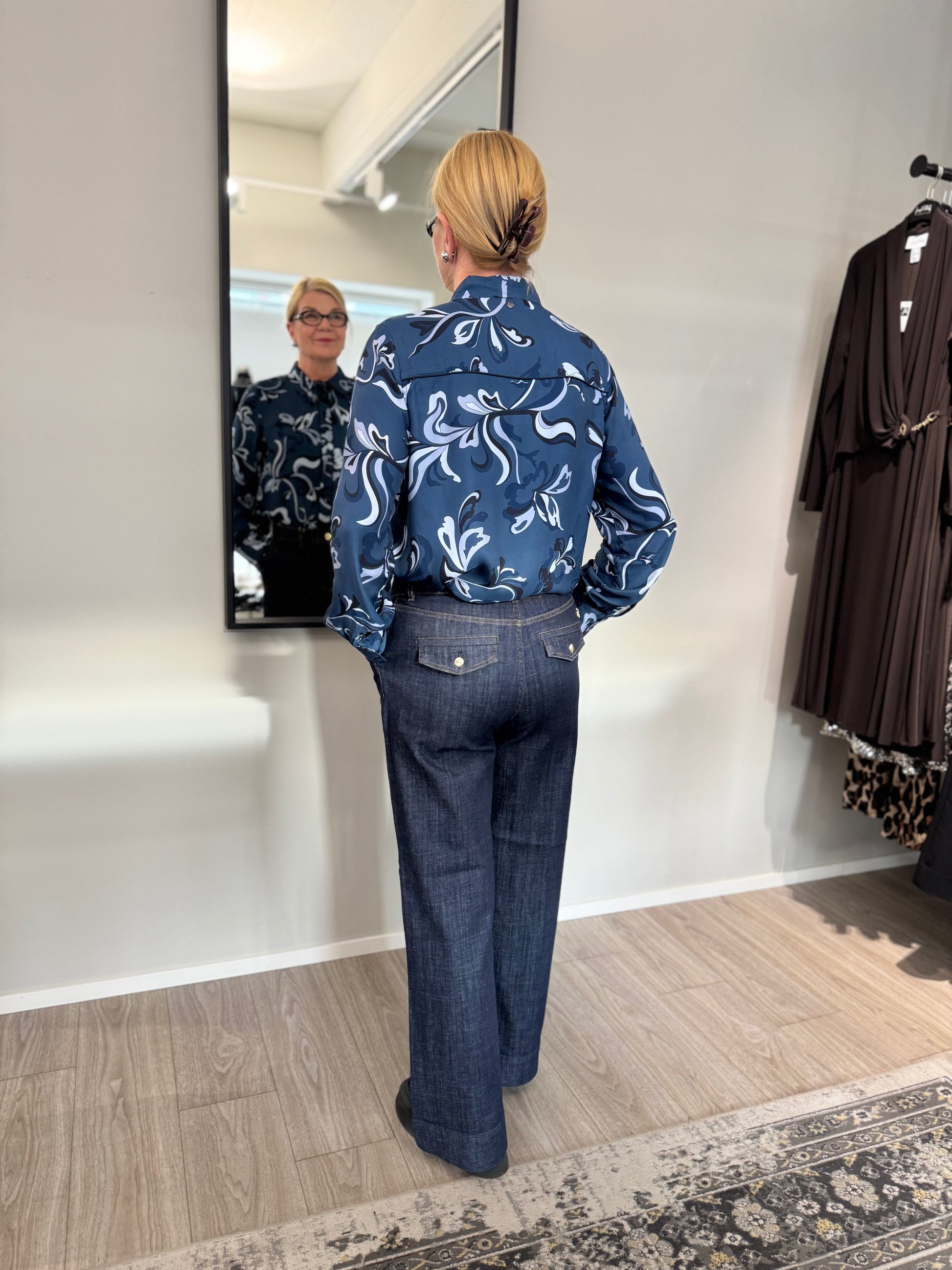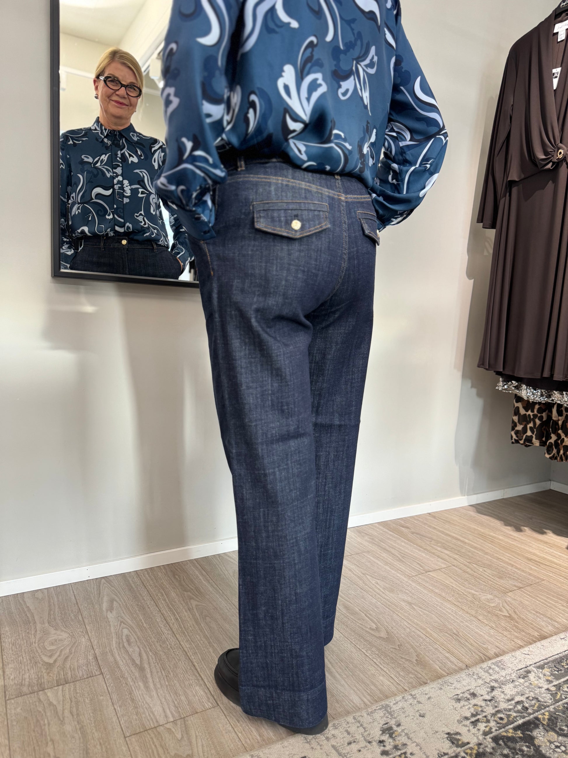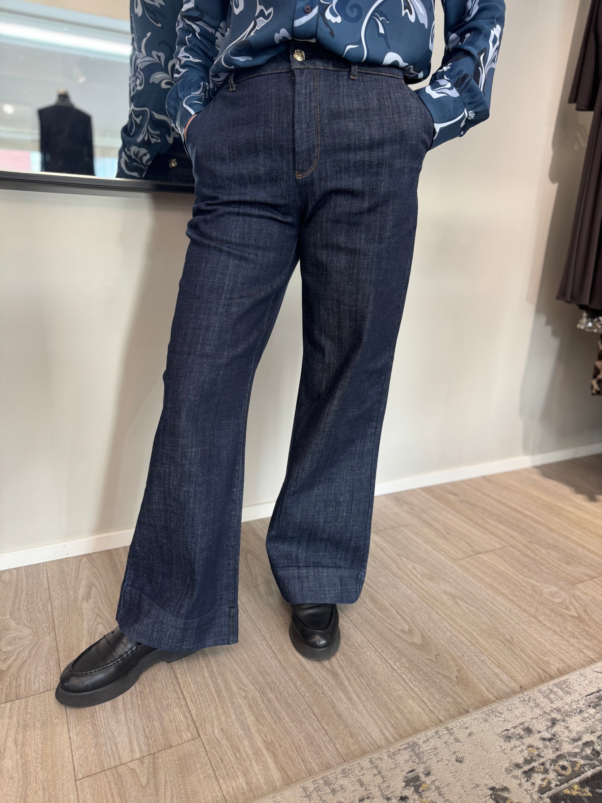 Leveät Mos Mosh Dara nippon farkut tasaisen tummansininsessä sävyssä. Mos Mosh Dara Nippon farkuissa on sivulla viistotaskut ja takana valeläppätaskut. Valmistettu jämäkästä materiaalista.