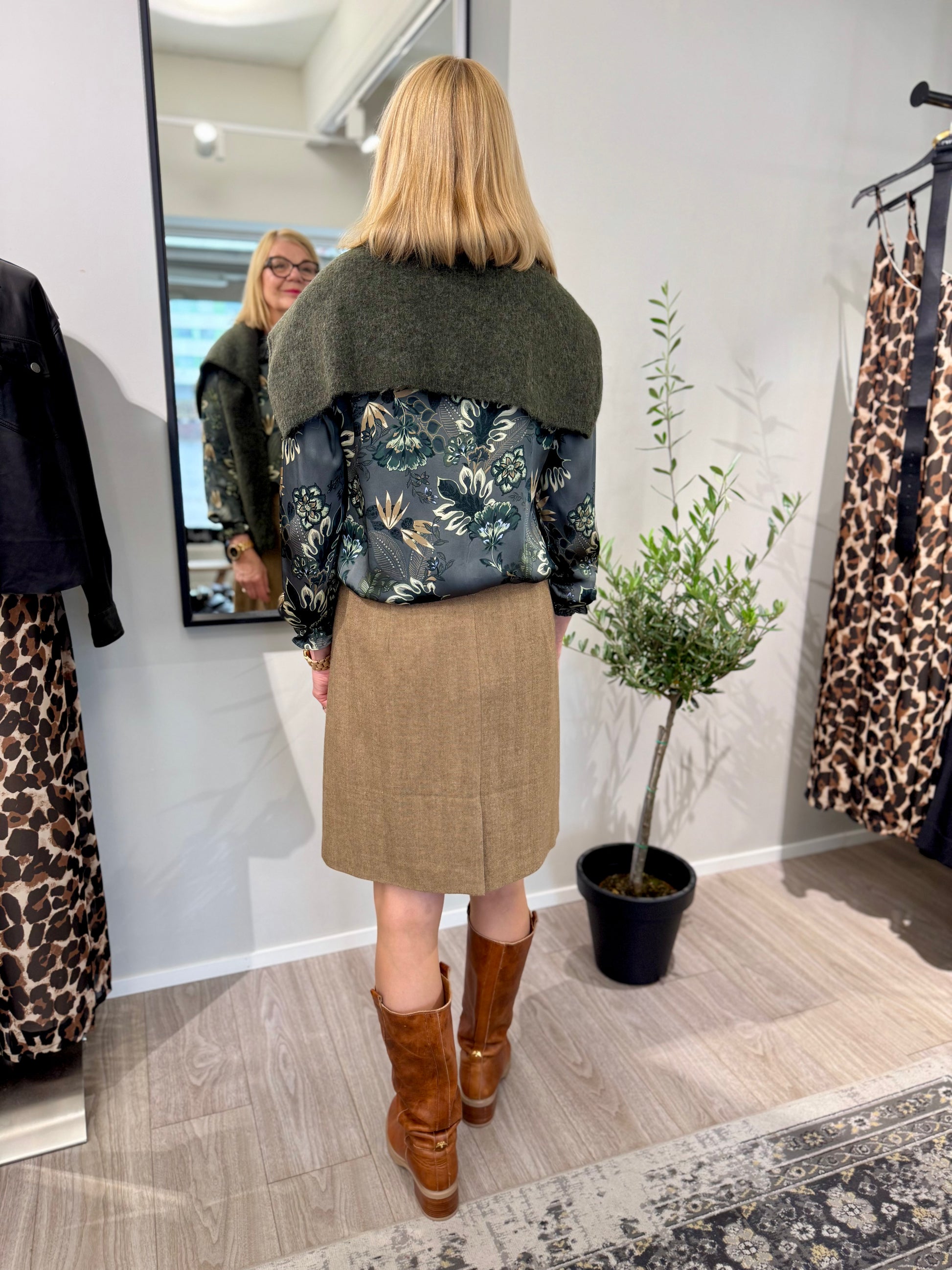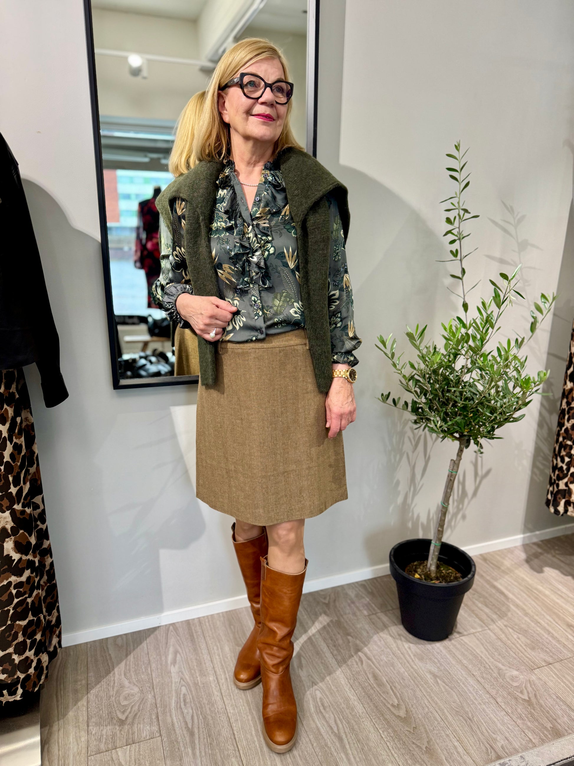 Mos Moshin siisti, ja hyvin istuva hame, joka valmistettu ajattomasta kalanruotokankaasta. Hameessa on sivuvetoketju, vyölenkit ja takana halkio. Mos Mosh Zanta Gabby hame on valmistettu ryhdikkäästä materiaalista ja se on vuoritettu. Yhdistä Mos Mosh Malie Gabby bleiserin kanssa, saadaksesi täydellisen kokonaisuuden.