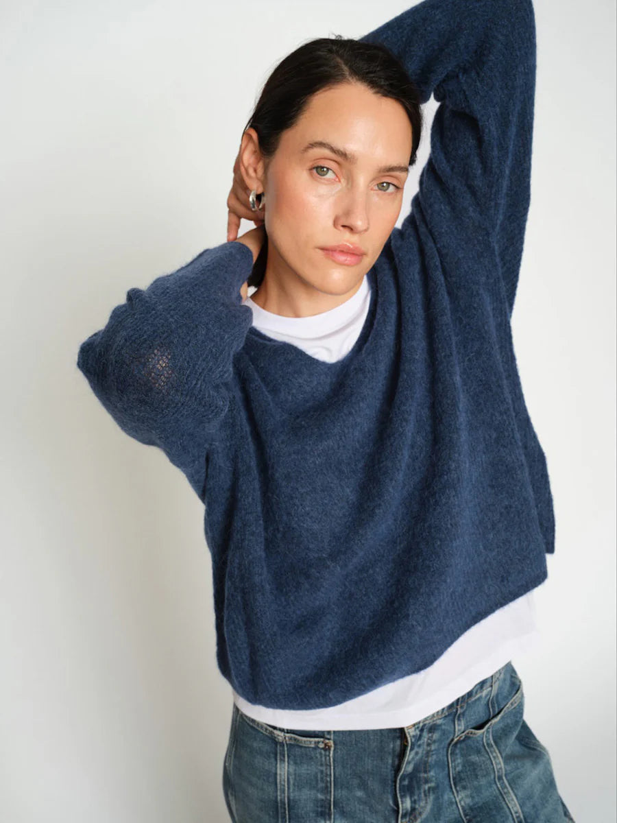 Ajaton ja suosittu Mos Moshin Thora neule, joka on valmistettu pehmeästä ja kevyestä alpakkasekoitteesta. Mos Mosh Thora neuleessa on väljä malli, lasketut olkapäät ja v-pääntie edessä ja takana. Lyhyen mallinsa ansiosta sopii mainiosti housujen kaveriksi tai mekkojen päälle. Malli on väljä, joten suosittelemme valitsemaan yhden koon pienemmän, kuin mitä normaalisti käytät.