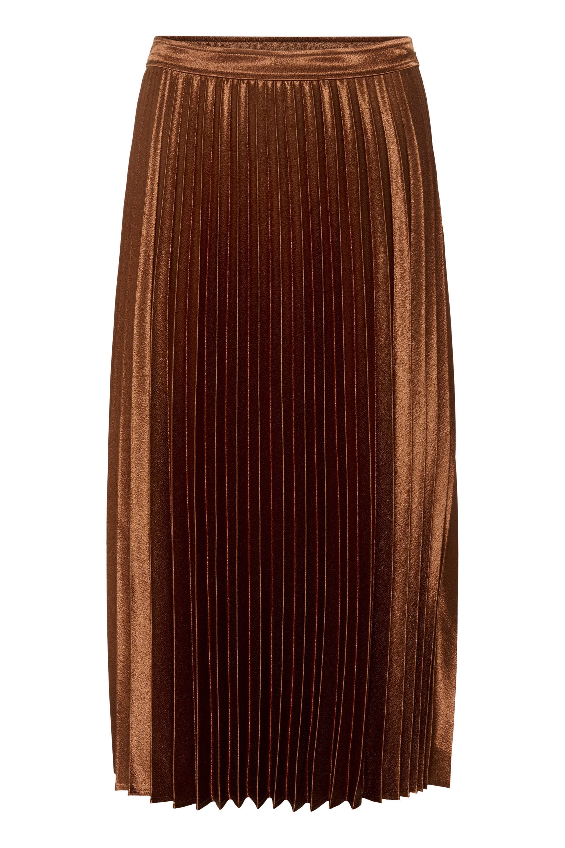 Kauniisti pliseerattu kuparinhohtoinen Part Two Violetta hame, jossa on takana vyötäröllä kuminauha ja sivussa piilovetoketju. Yhdistä Part Two Vernona neuletakin kanssa, saadaksesi täydellisen kokonaisuuden.
