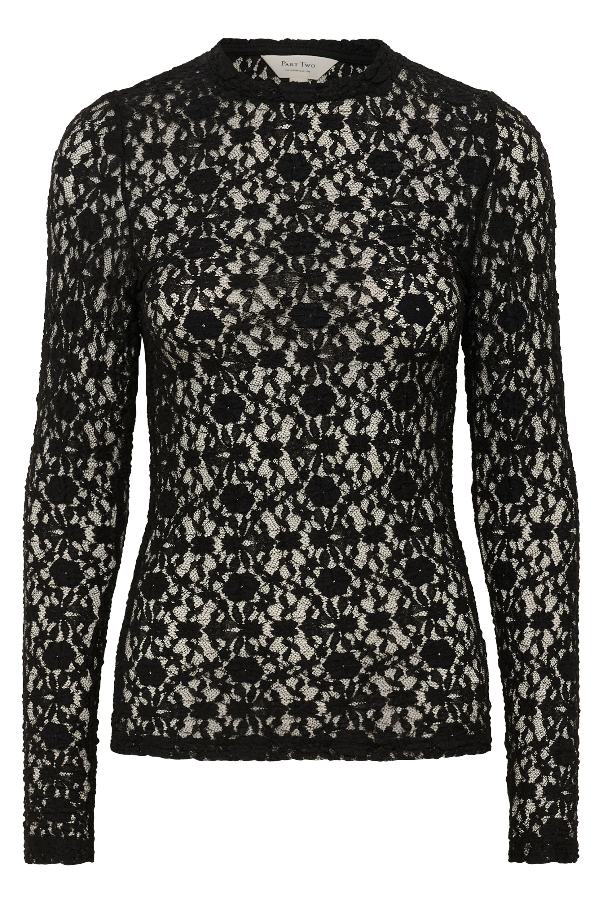 Kapealinjainen Venetia pitsipusero pyöreällä pääntiellä. Part Two Venetia pitsipusero on valmistettu joustavasta ja läpikuultavasta pitsistä.