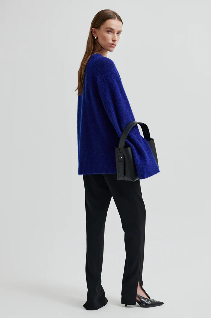 Pehmeä ja pörröinen Second Female Brookline neule pyöreällä pääntiellä ja raglanhihoilla. Second Female Brookline neuleessa on väljä, suora malli, halkiot sivuilla, sekä leveähköt hihansuut.