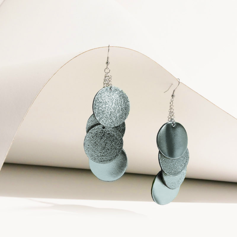 Nahasta valmistetut, kevyet Viaminnet Dance korvakorut, ovat leikkisä yhdistelmä modernia ja suoraviivaista muotoilua, sekä juhlavaa hohtoa. Malliston pehmeät muodot ja geometria luovat kontrastin sen korvakorujen kirkkaille ja hohtaville väreille.
